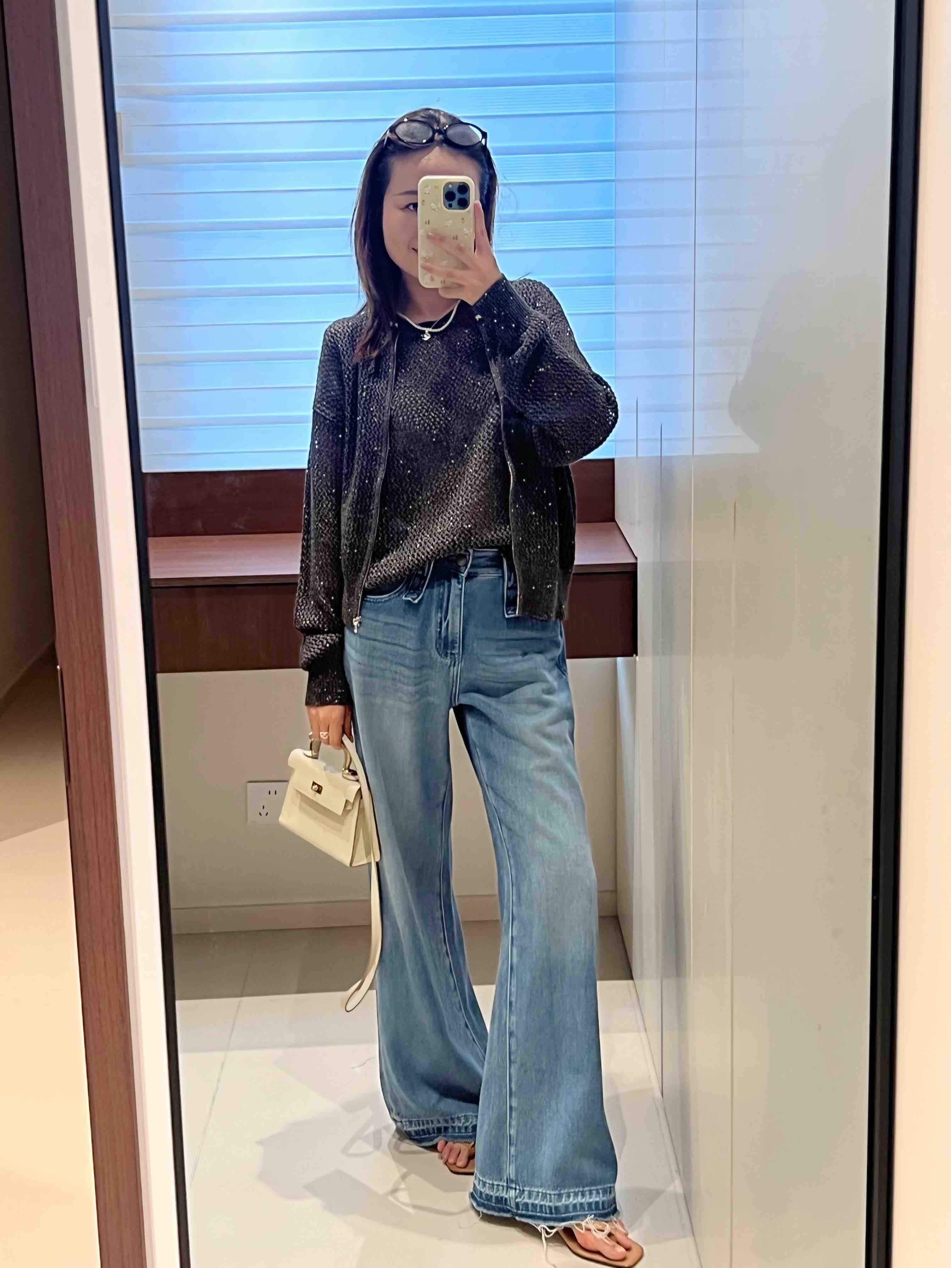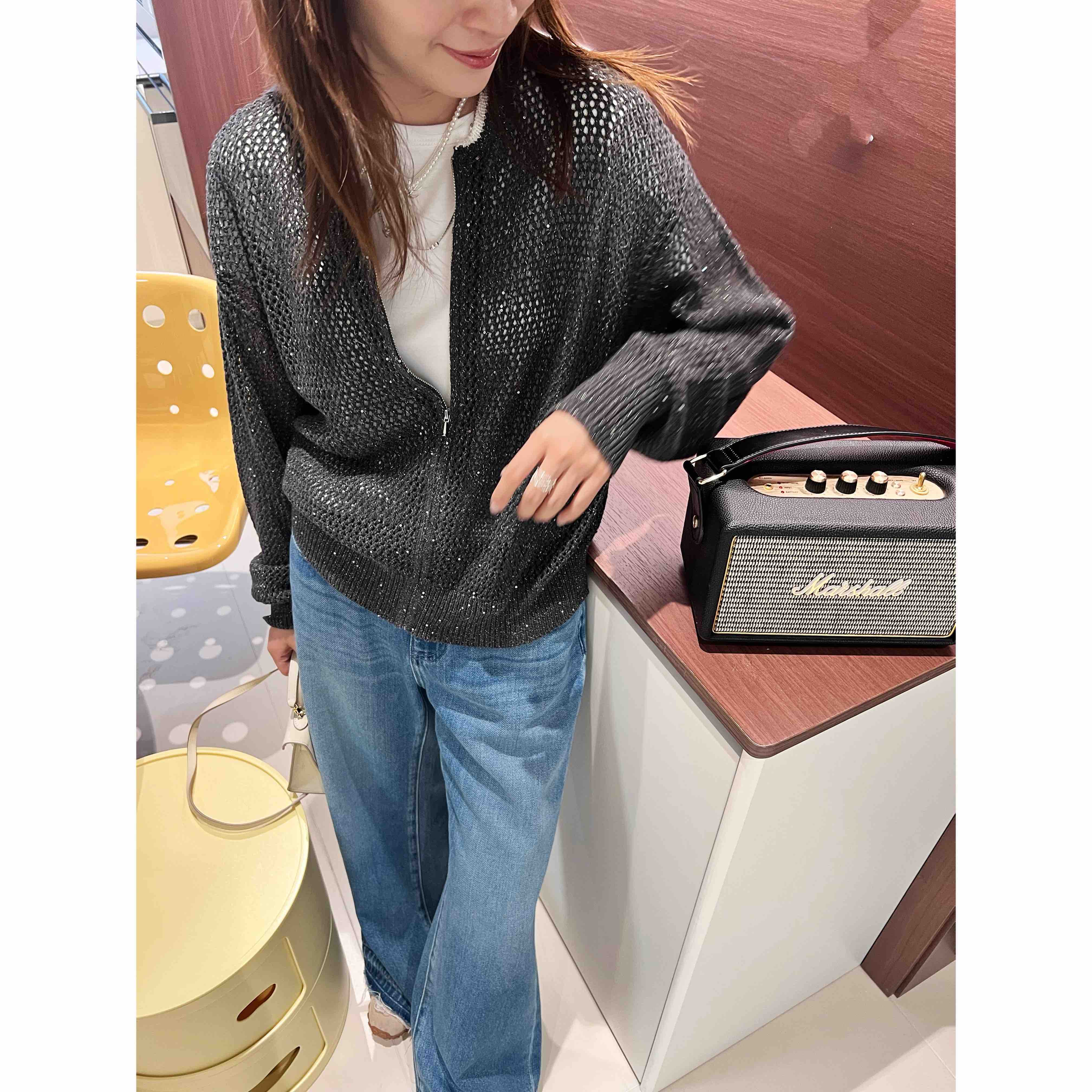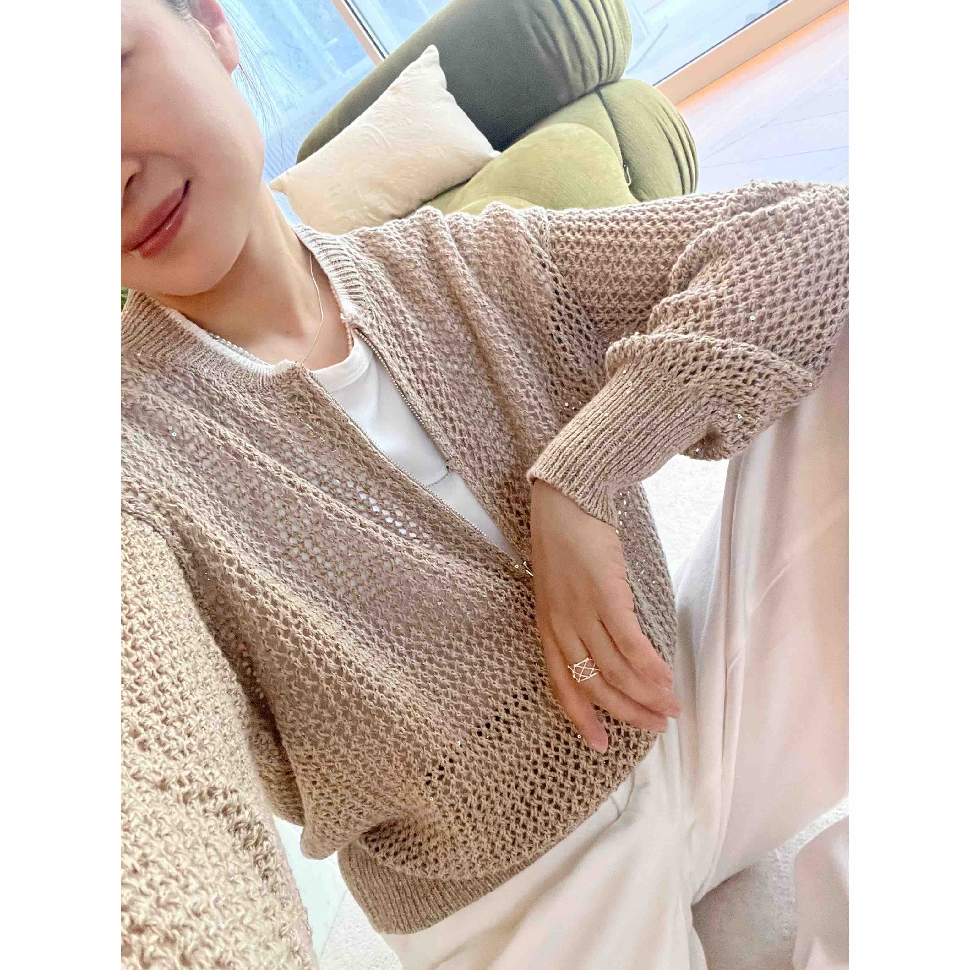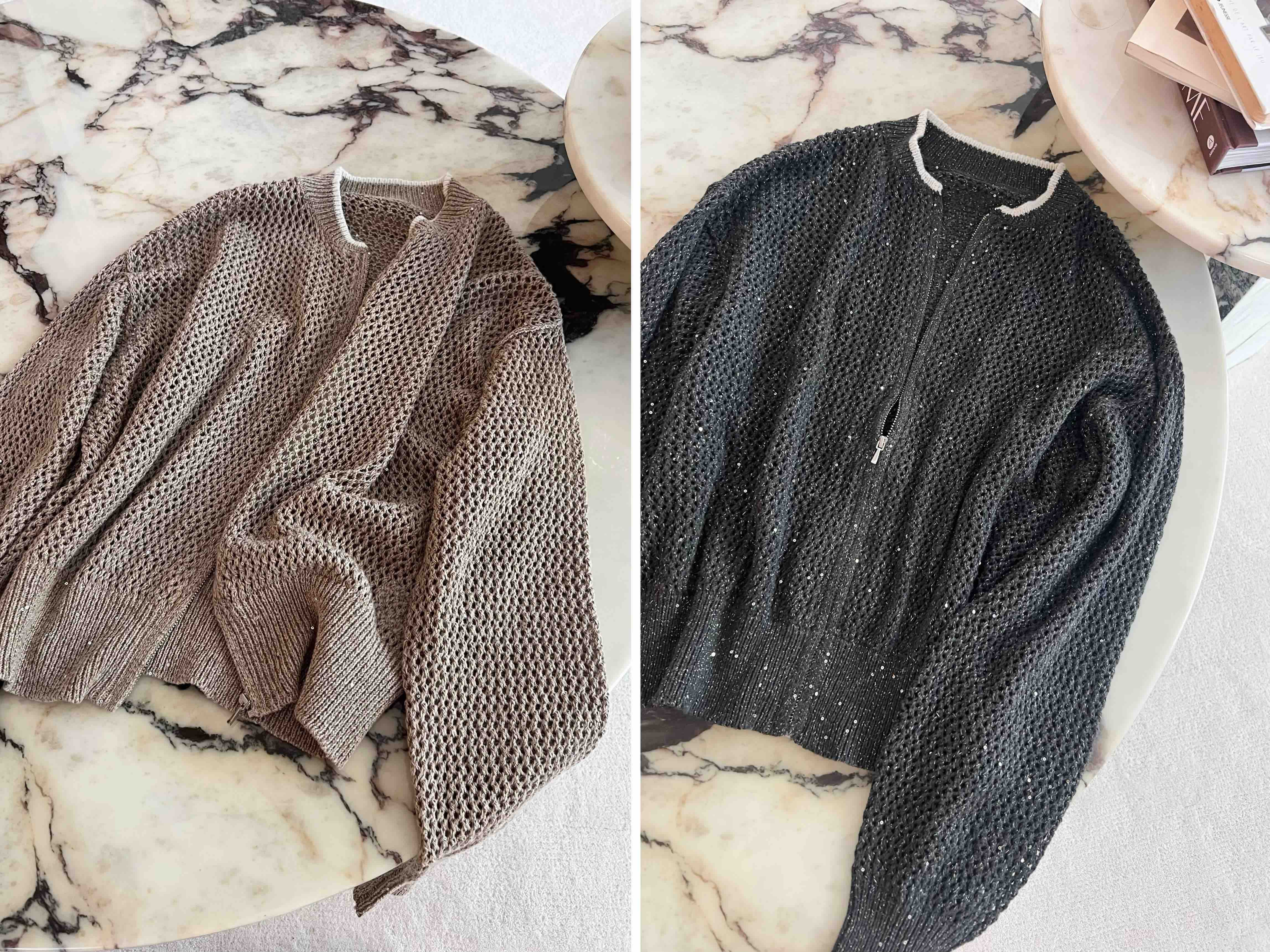 2508415 特种纱 棉羊毛 珠片镂空开衫