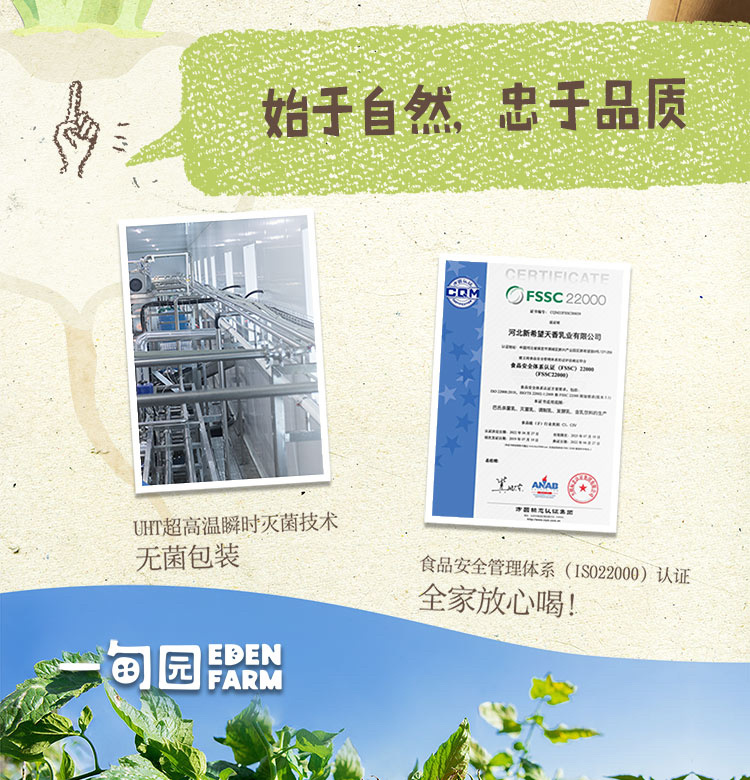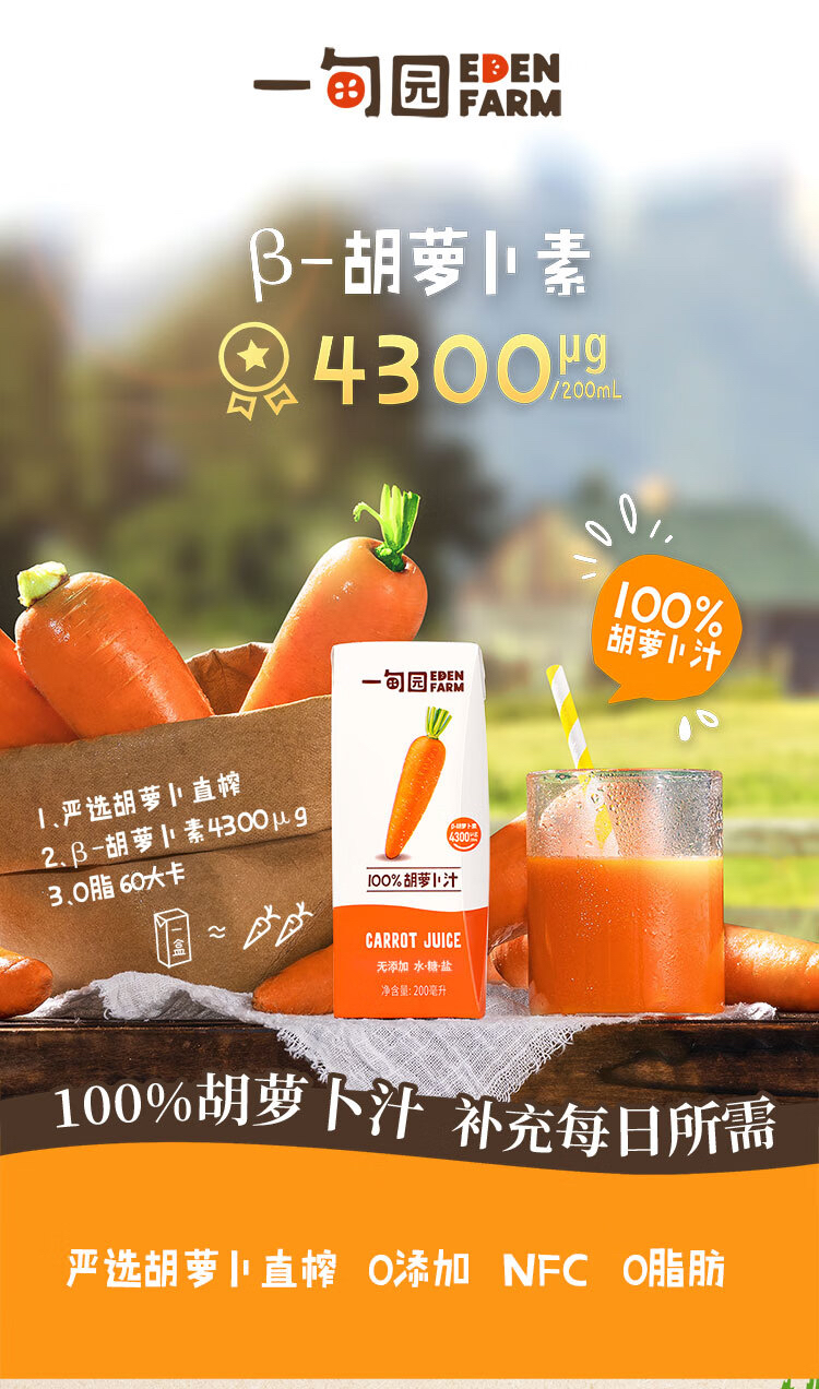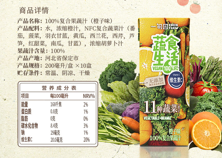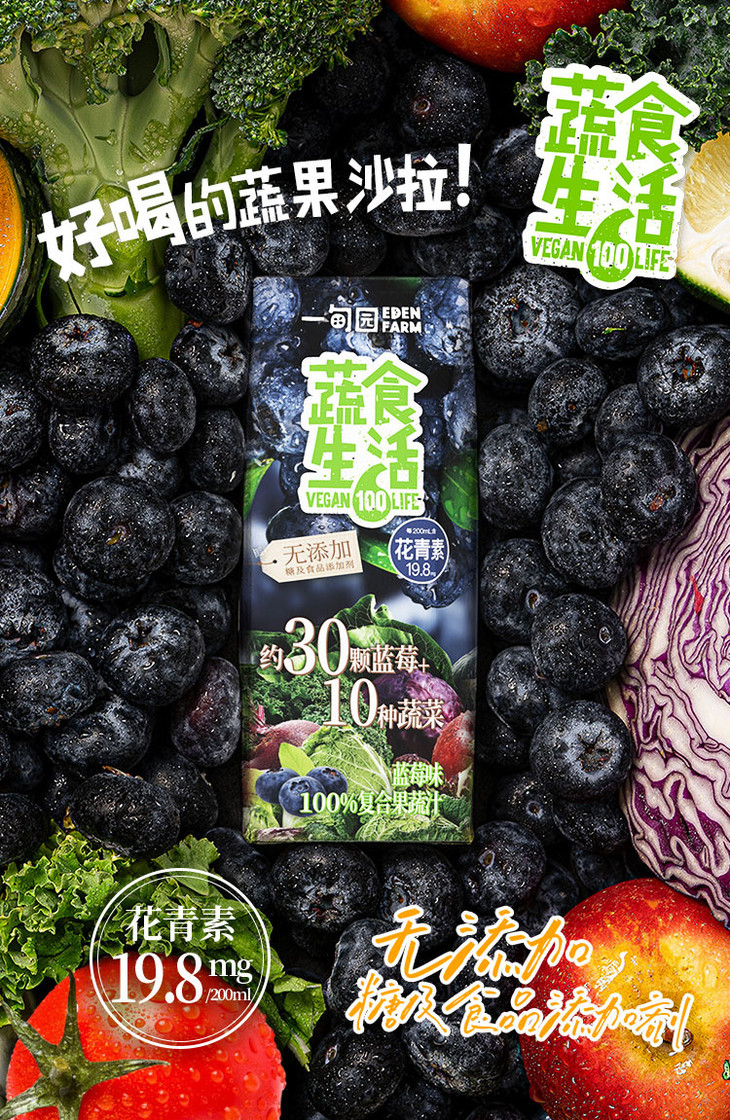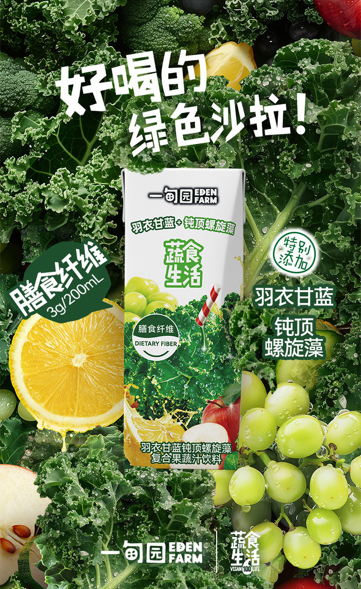 一甸园EdenFarm,2020年成立,一直探寻方便轻松的方式帮助解决中国居民膳食蔬菜摄入不足的问题,为消费者构建“蔬菜可以比你以为的更好喝,也比想象中更重要”的消费理念,从发布第一款“100%零添加、健康、美味”的番茄汁饮品开始,一直到现在的一日量蔬菜系列和蔬食生活系列,一直坚持100%无添加、非浓缩还原。