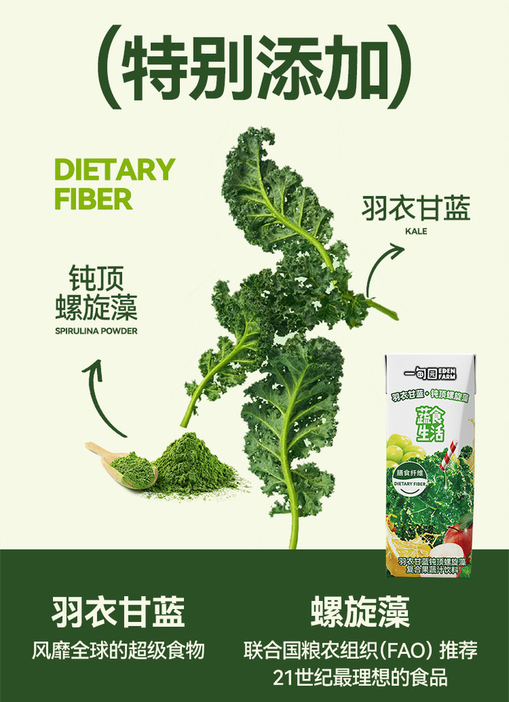 羽衣甘蓝汁,则精选了羽衣甘蓝、番茄、菠菜等10种蔬菜及苹果、柠檬、白葡萄,还特别添加螺旋藻粉和两大益生元,既好喝又营养。小小一瓶,富含膳食纤维、维生素、矿物质和抗氧化剂,对强强免疫力、cu进消化、补充营养都很有好处。而且不像单一的羽衣甘蓝汁那么难入口,整体口感清爽,还不错喝哦!