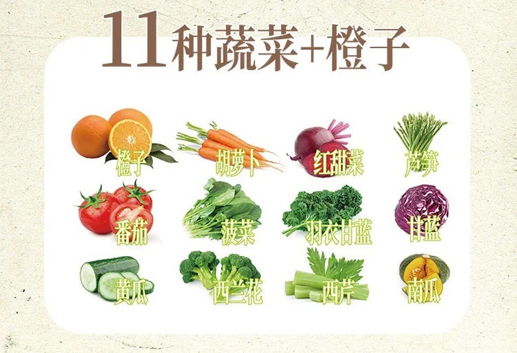 复合橙汁是由橙子及11种新鲜蔬果复配,口感酸甜,每一盒含有约40mg的维生素C,帮助维持皮肤、粘膜、骨骼及牙齿健康,又能抗氧化。复合蓝莓口味口感也非常好,每一瓶约有30颗蓝莓搭配苹果、番茄、羽衣甘蓝、红甜菜及西芹等十种蔬菜,约含花青素19.8毫克,抗衰界的扛把子!