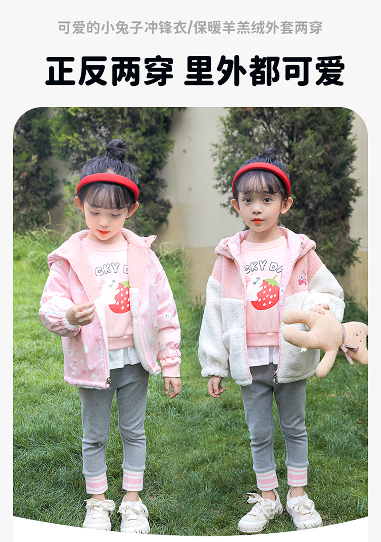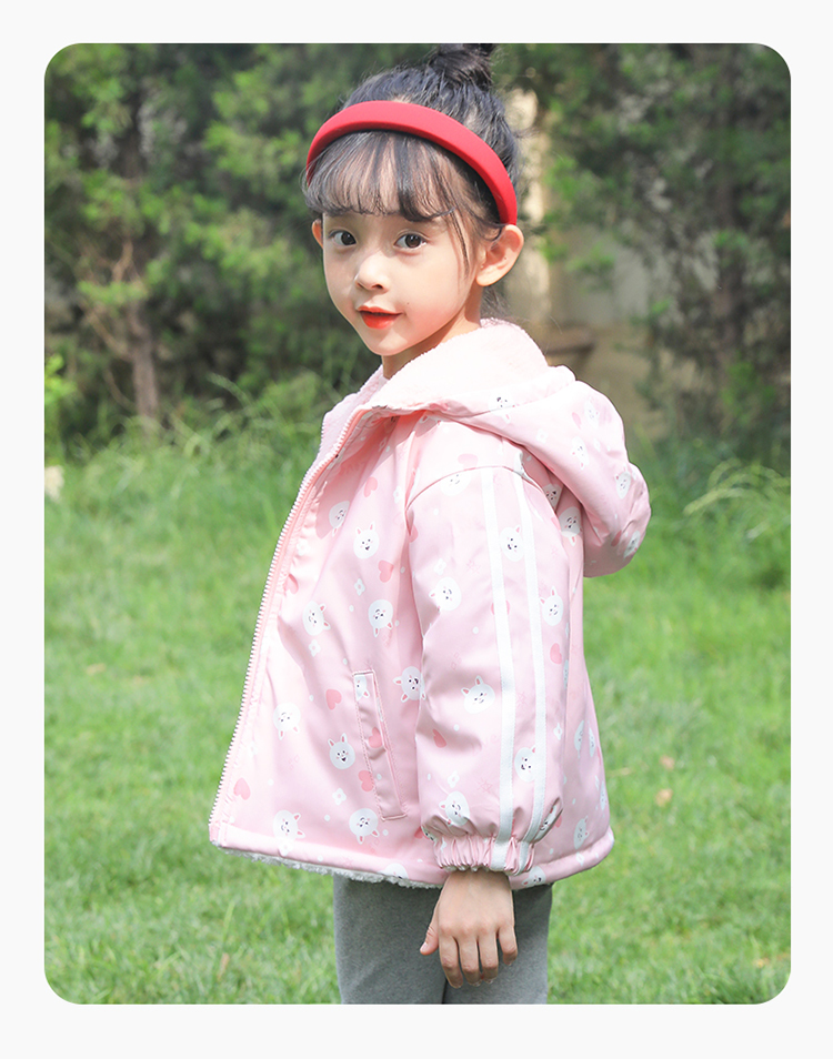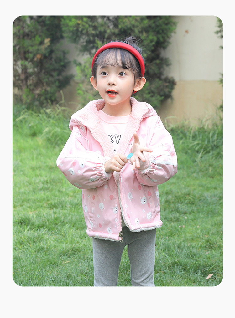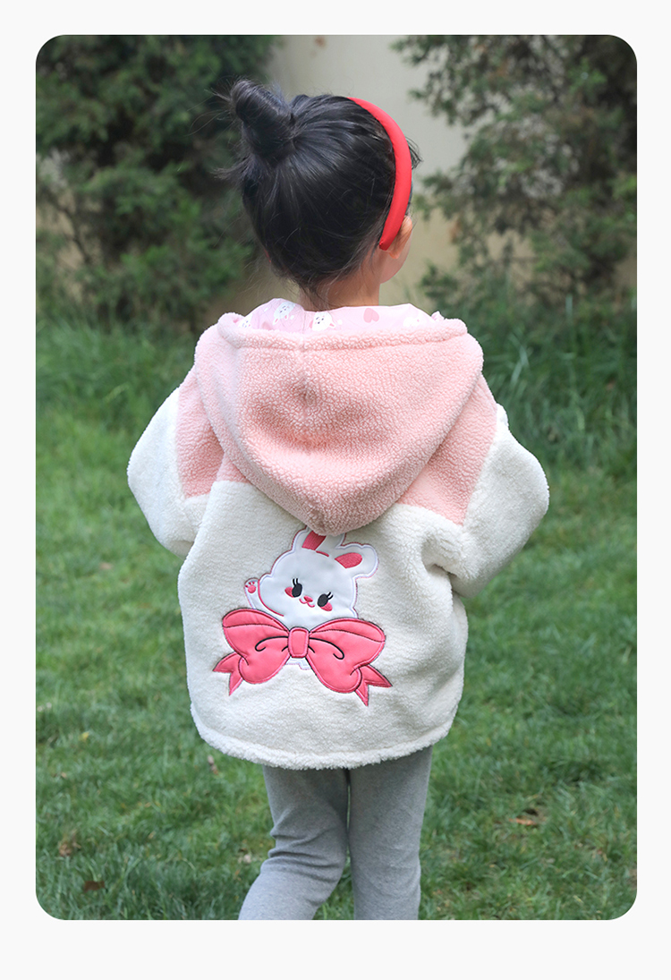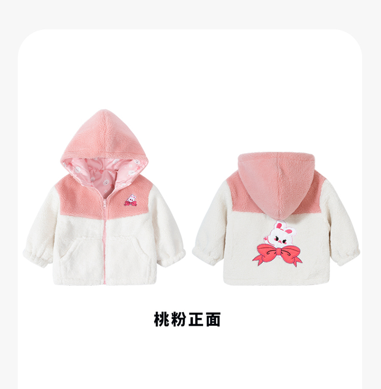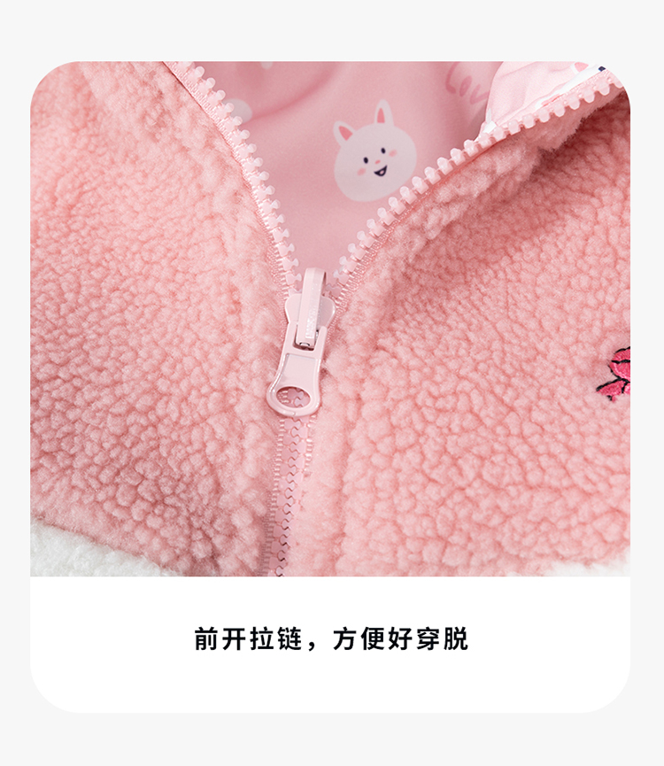 贝贝怡童装秋冬新款女童可爱兔子冲锋衣保暖羊羔绒外套两面穿234S3224