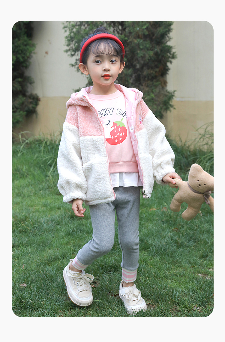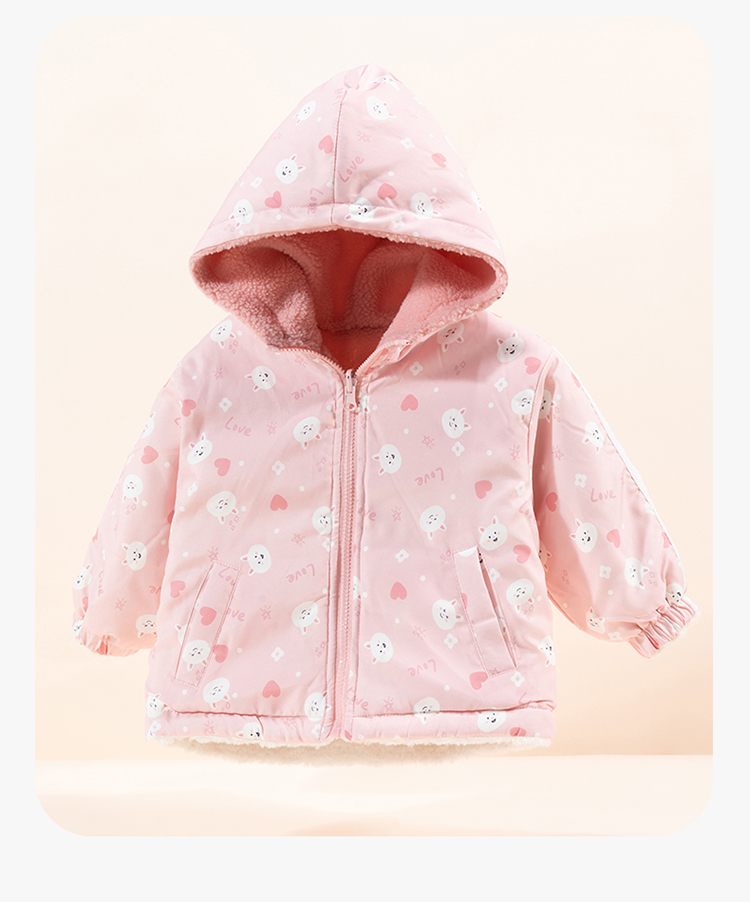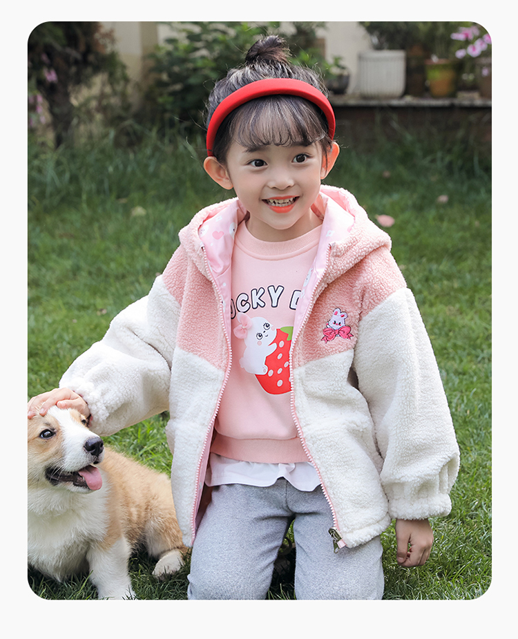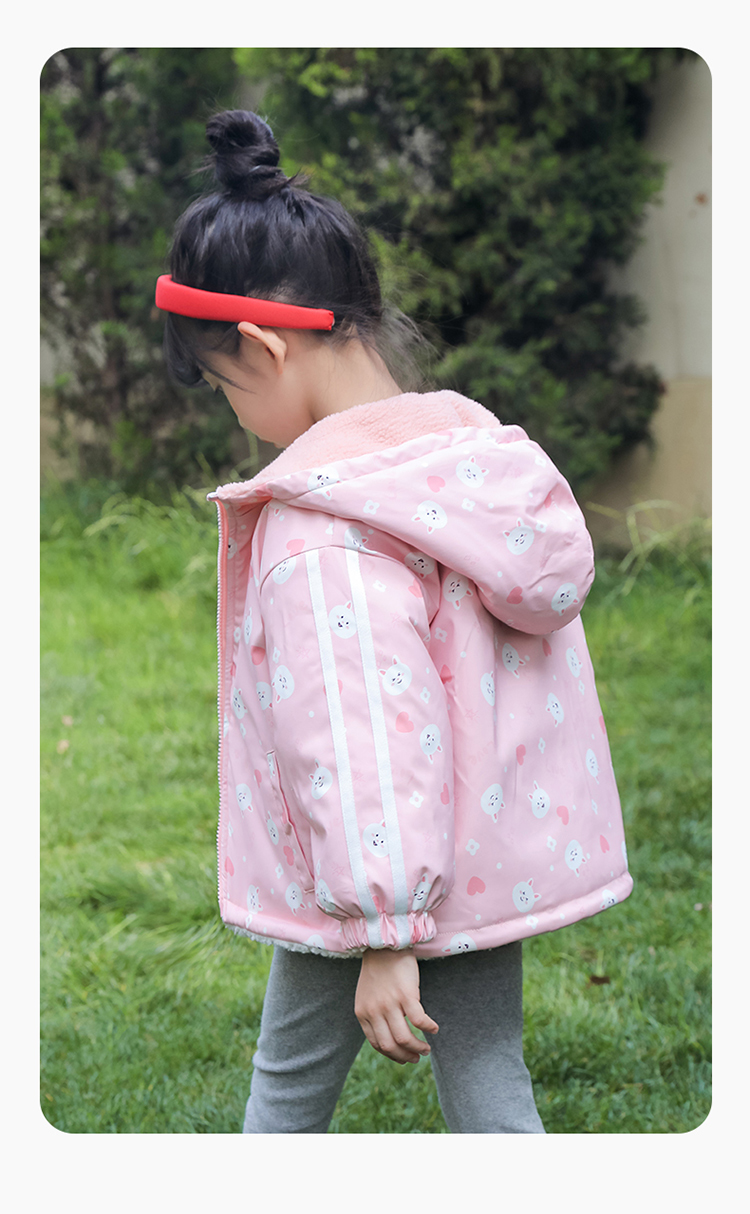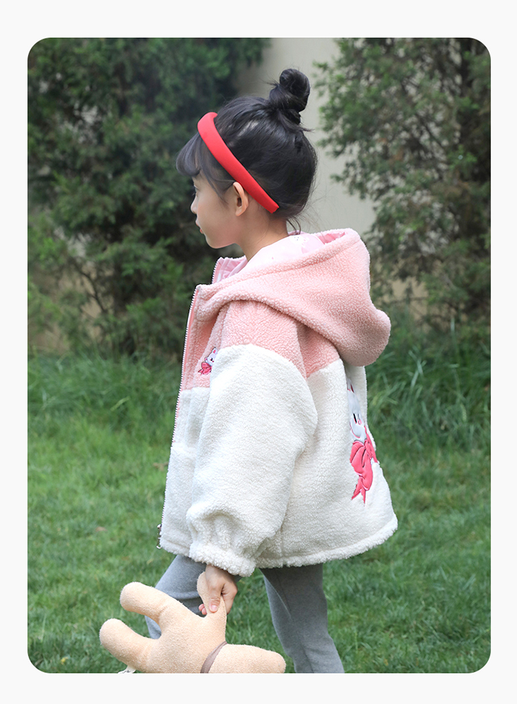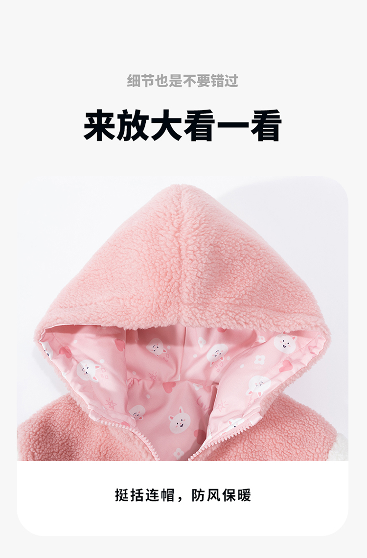 贝贝怡童装秋冬新款女童可爱兔子冲锋衣保暖羊羔绒外套两面穿234S3224