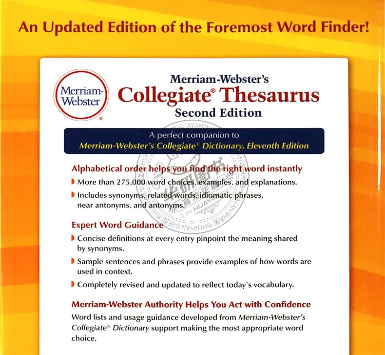 书名:Merriam-Webster's Collegiate Thesaurus, Newest Edition韦氏大学词源字典
