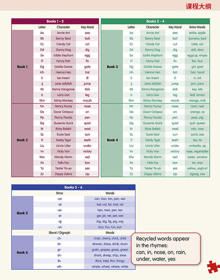 ★「头韵」和「尾韵」均编排于此语音课程内,有助提升幼儿的基础拼音技巧。