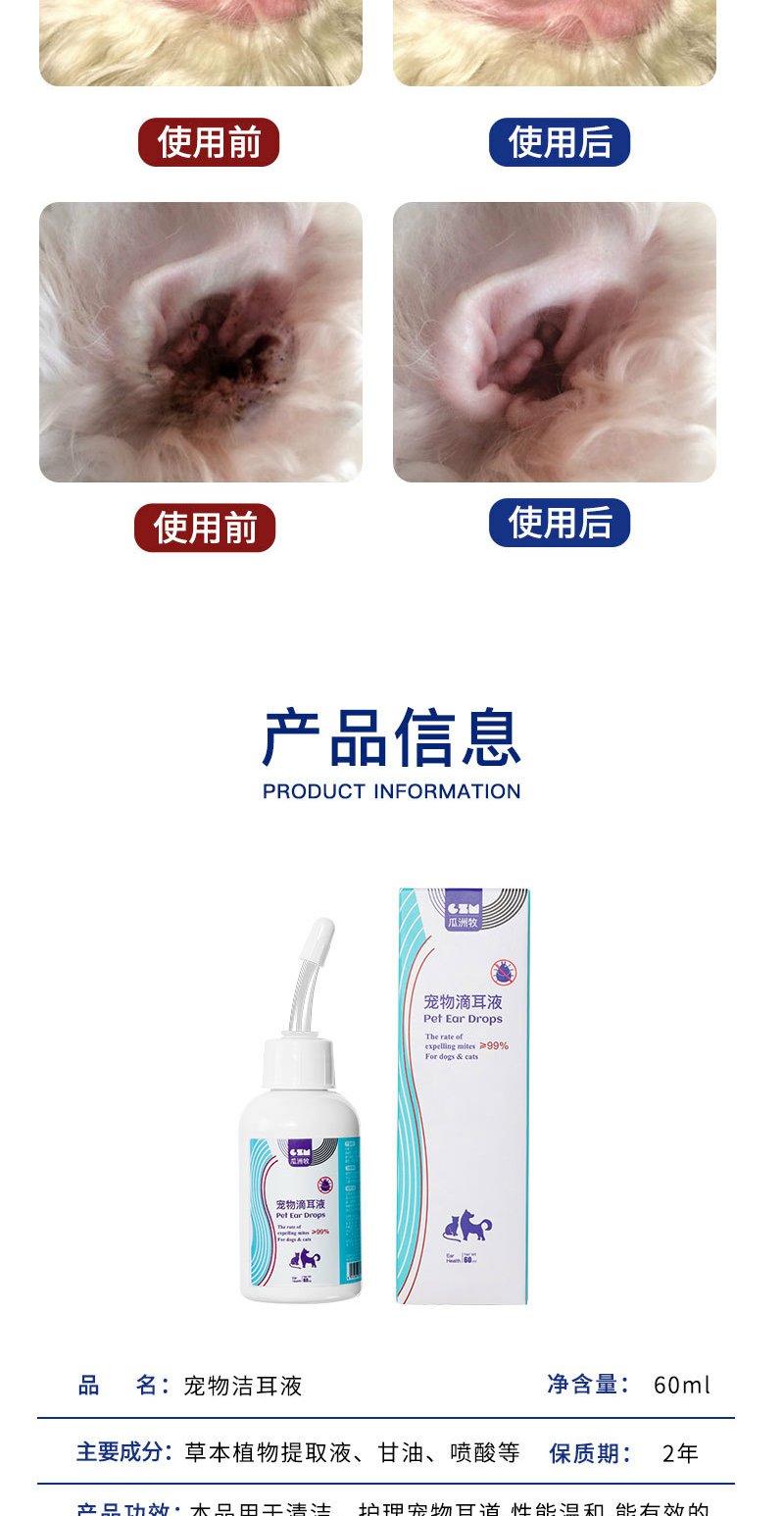 【猫狗通用】瓜牧洲宠物耳朵清洗/液猫用狗用耳朵清洁沐浴60ml/个