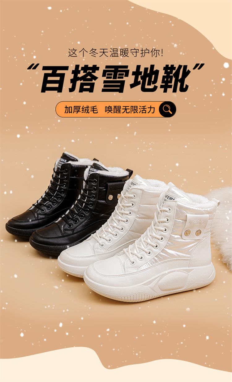 【百搭雪地靴】加厚绒毛 超纤皮+羽绒布 显高后跟 版型偏小 建议拍大一码!