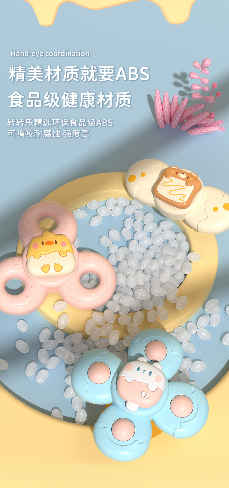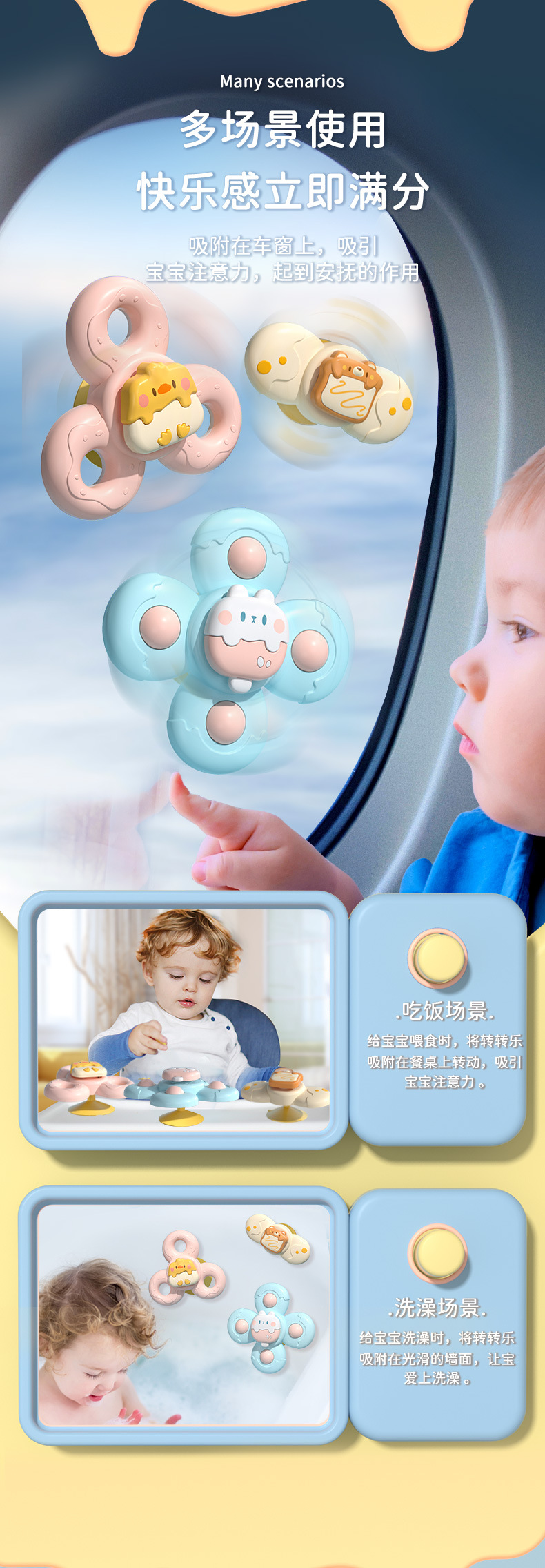 【趣味转不停!锻炼宝宝手眼协调】儿童卡通宝宝吸盘转转乐婴儿玩具旋转0-6个月新生儿益智0-3岁摇铃