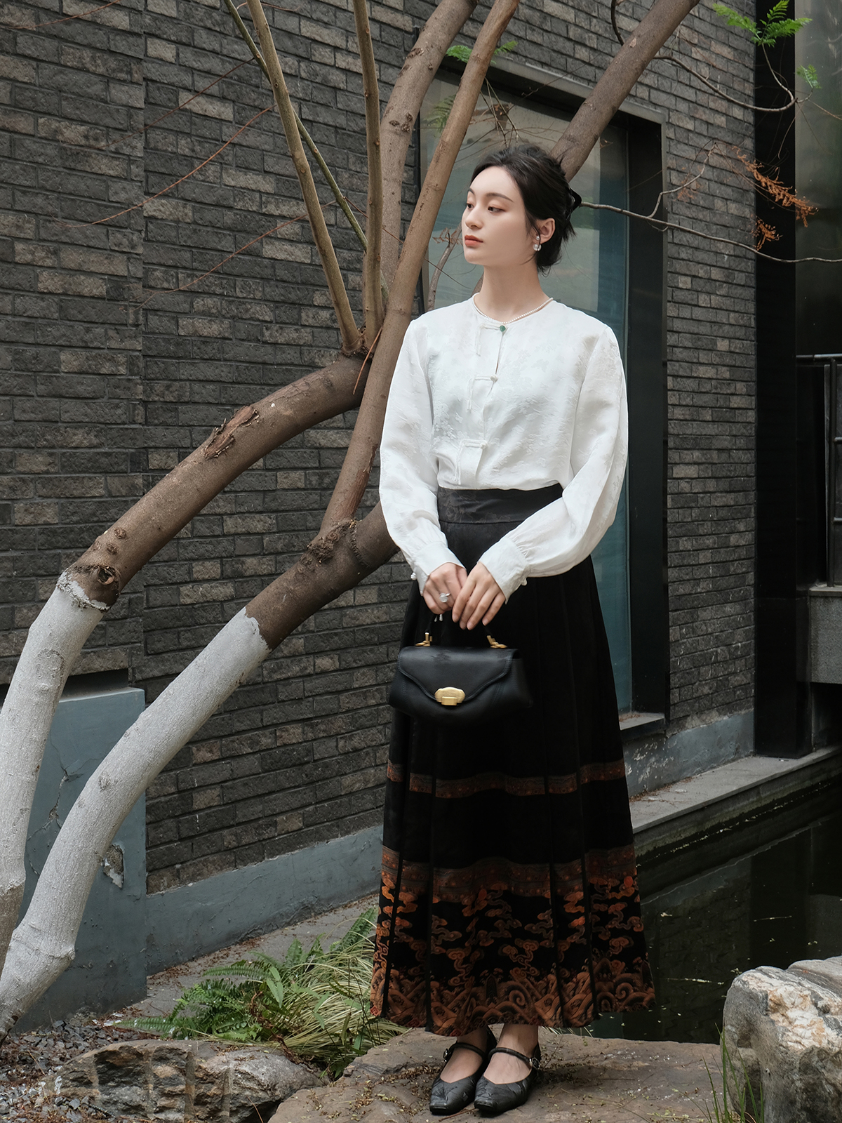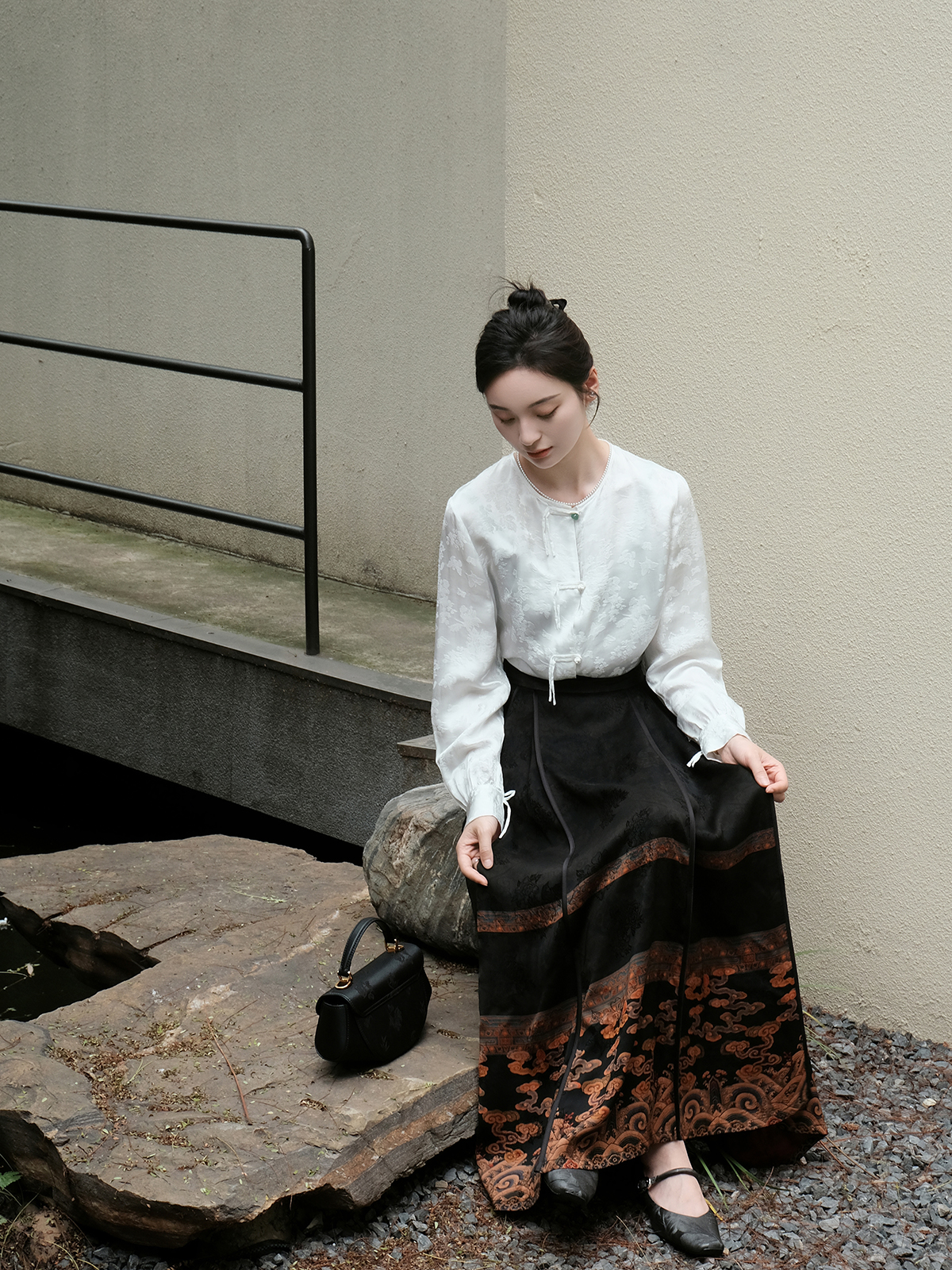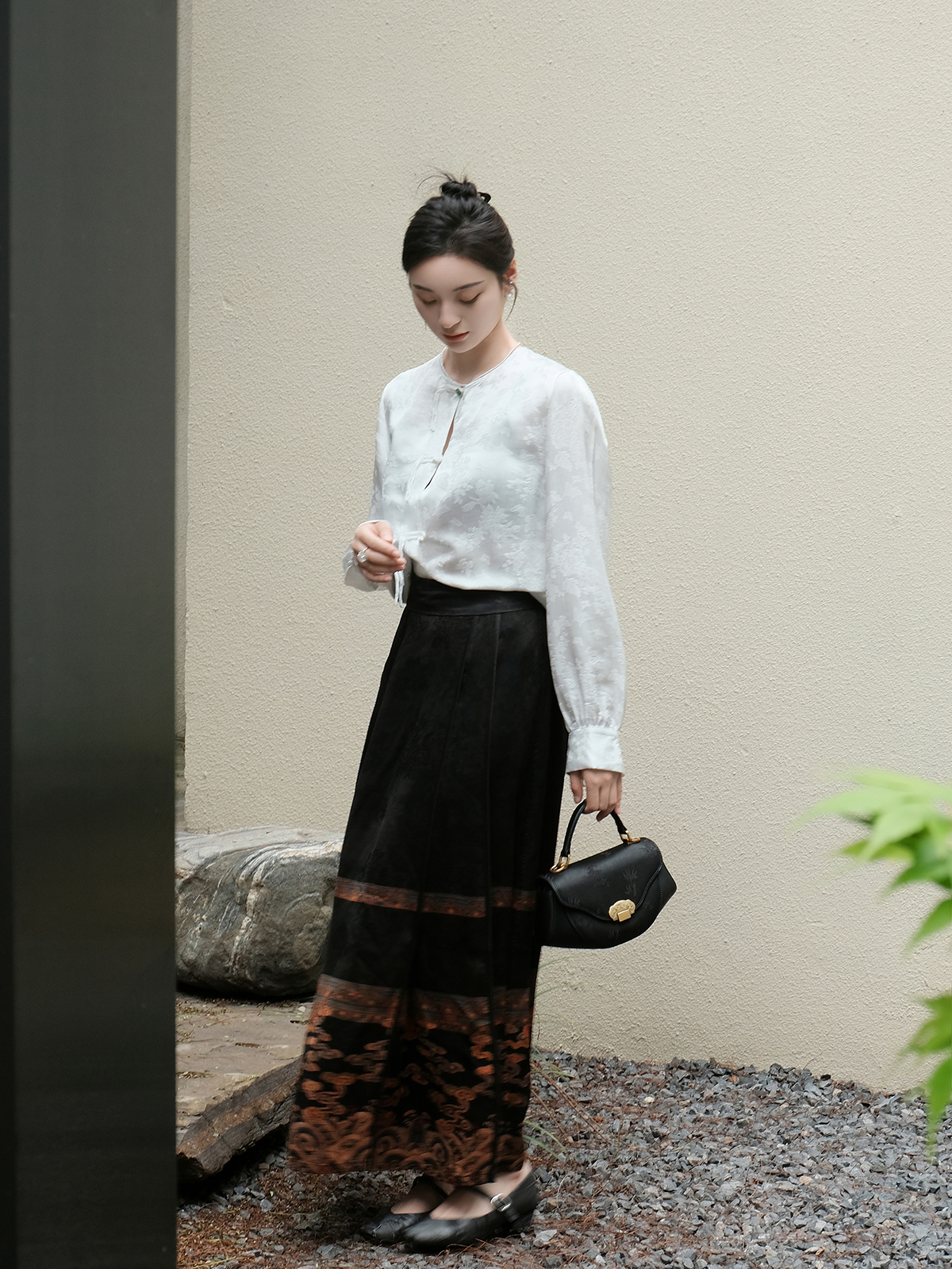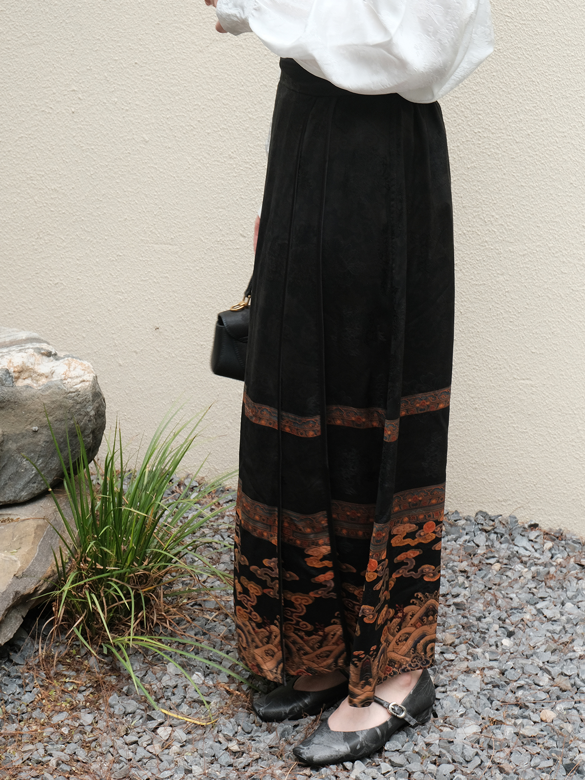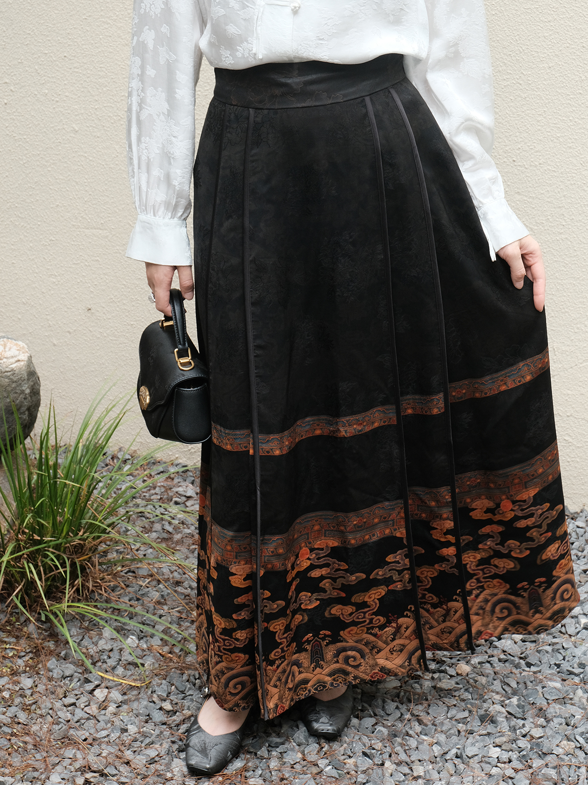 盛唐婧 |真丝香云纱重缎马面裙-黑色