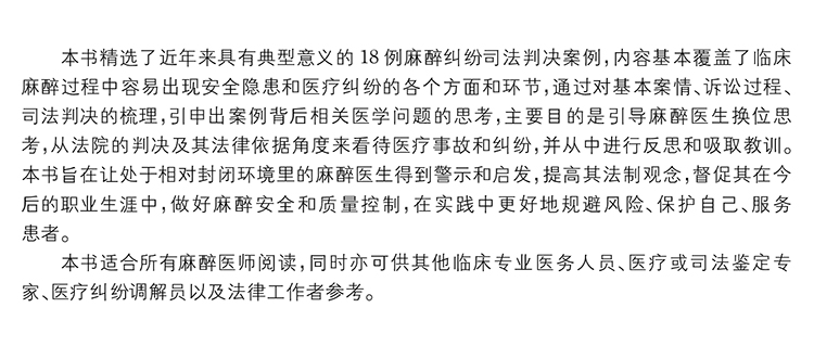 麻醉纠纷案例的司法判决及医学思考 曹云飞 黄长顺 严海雅 9787313210630