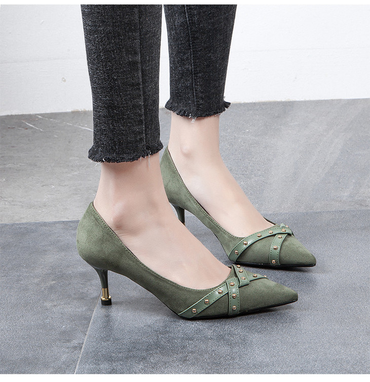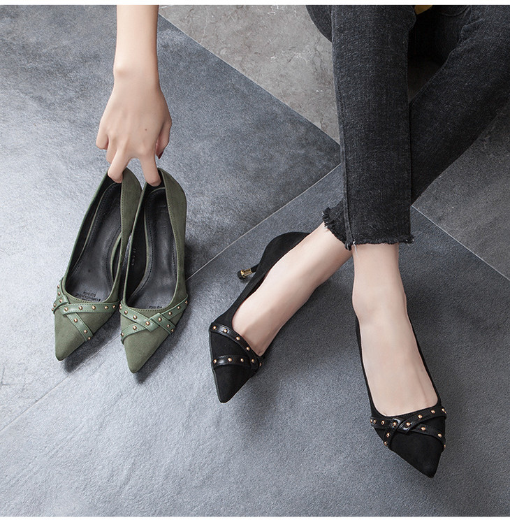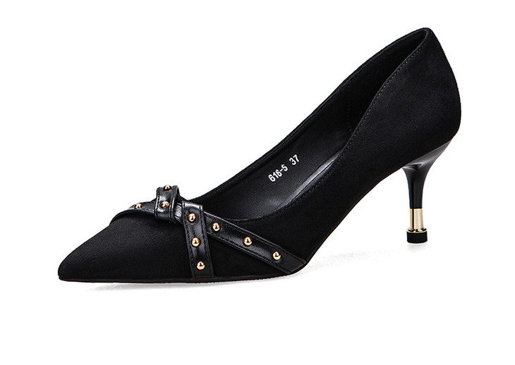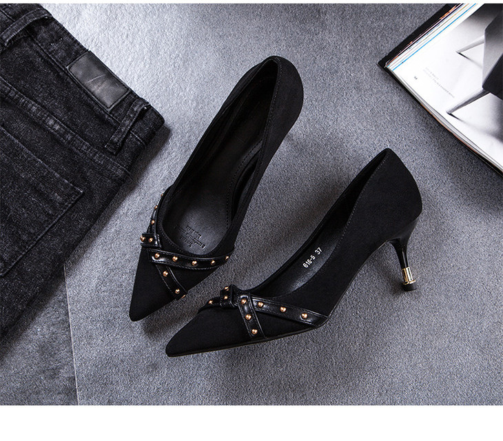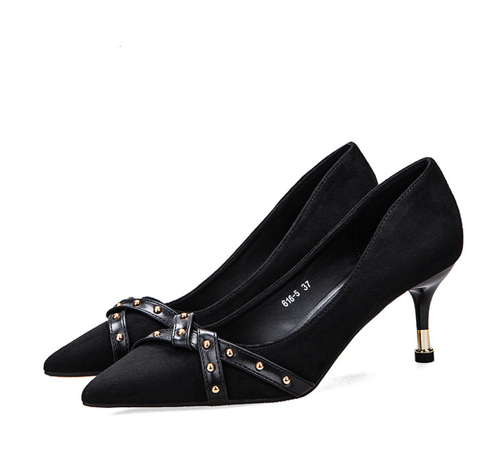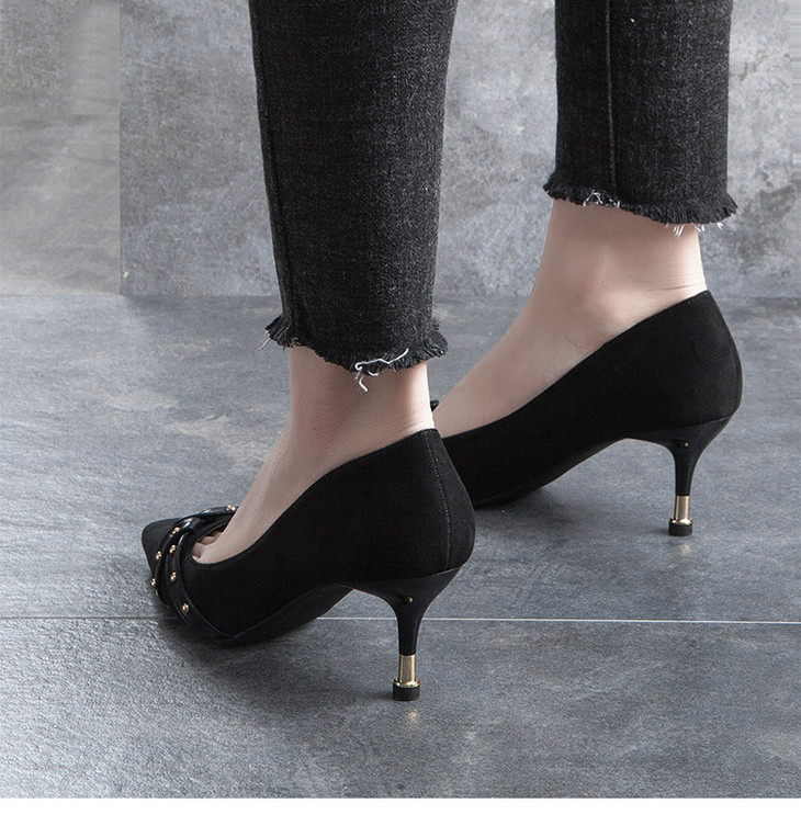 【服饰鞋包】高跟鞋单鞋女交叉带尖头细跟浅口黑色职业工作鞋