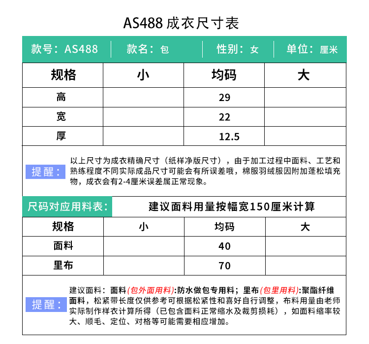 裁缝学苑AS488帆布双肩背包纸样女装帆布包新款百搭样板图纸