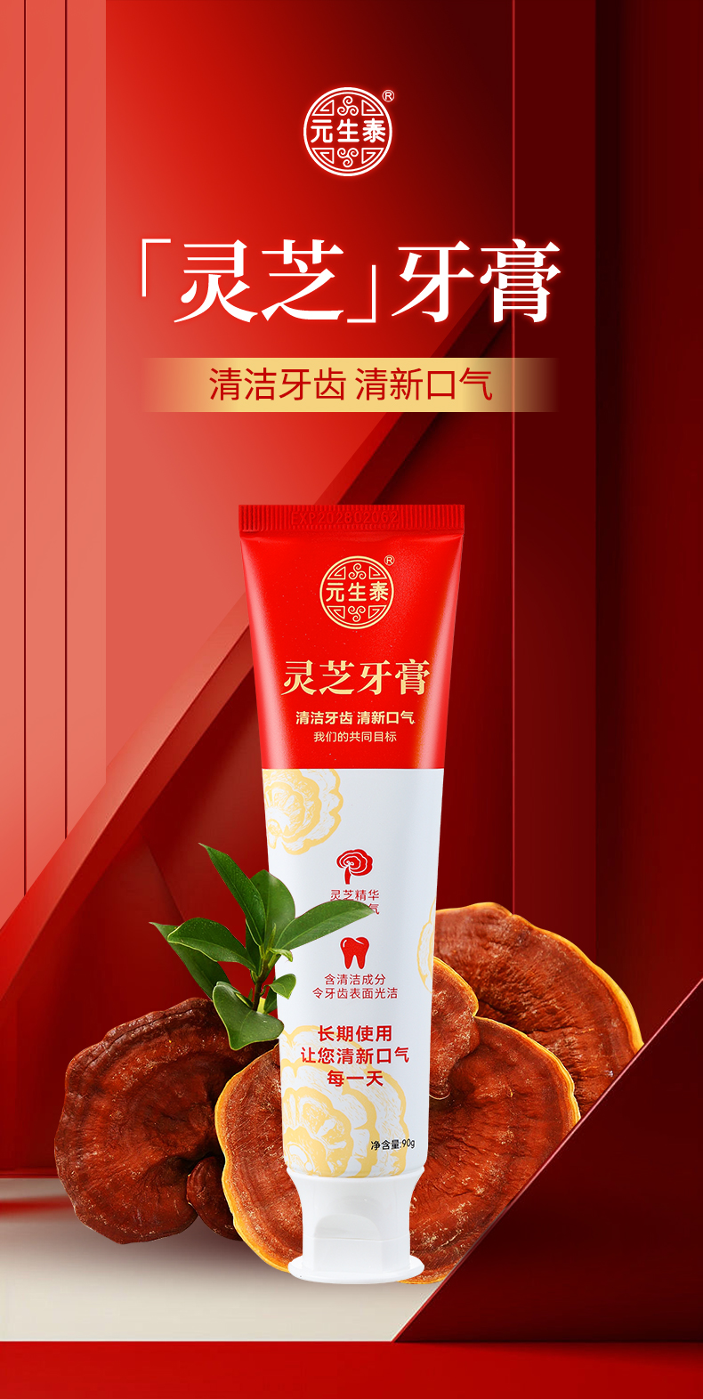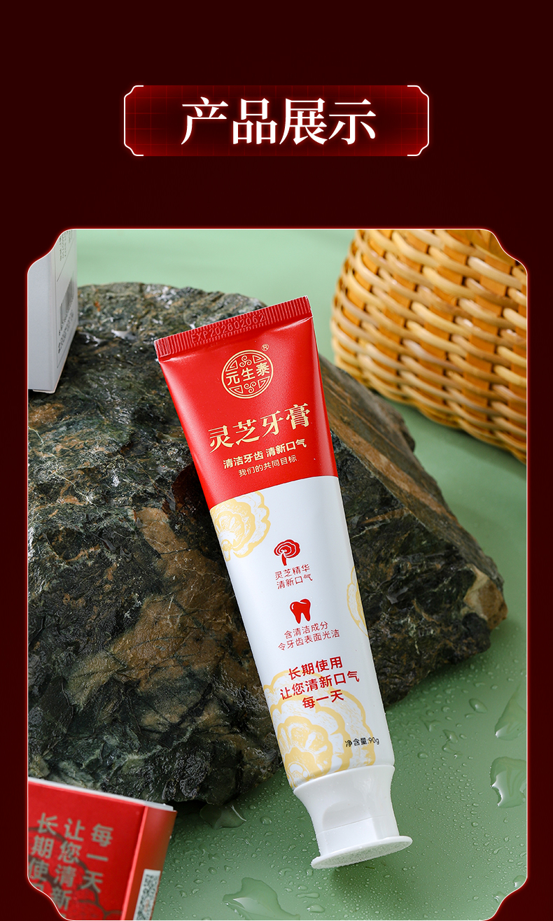 元生泰 灵芝牙膏90g/支 清洁牙齿 清新口气