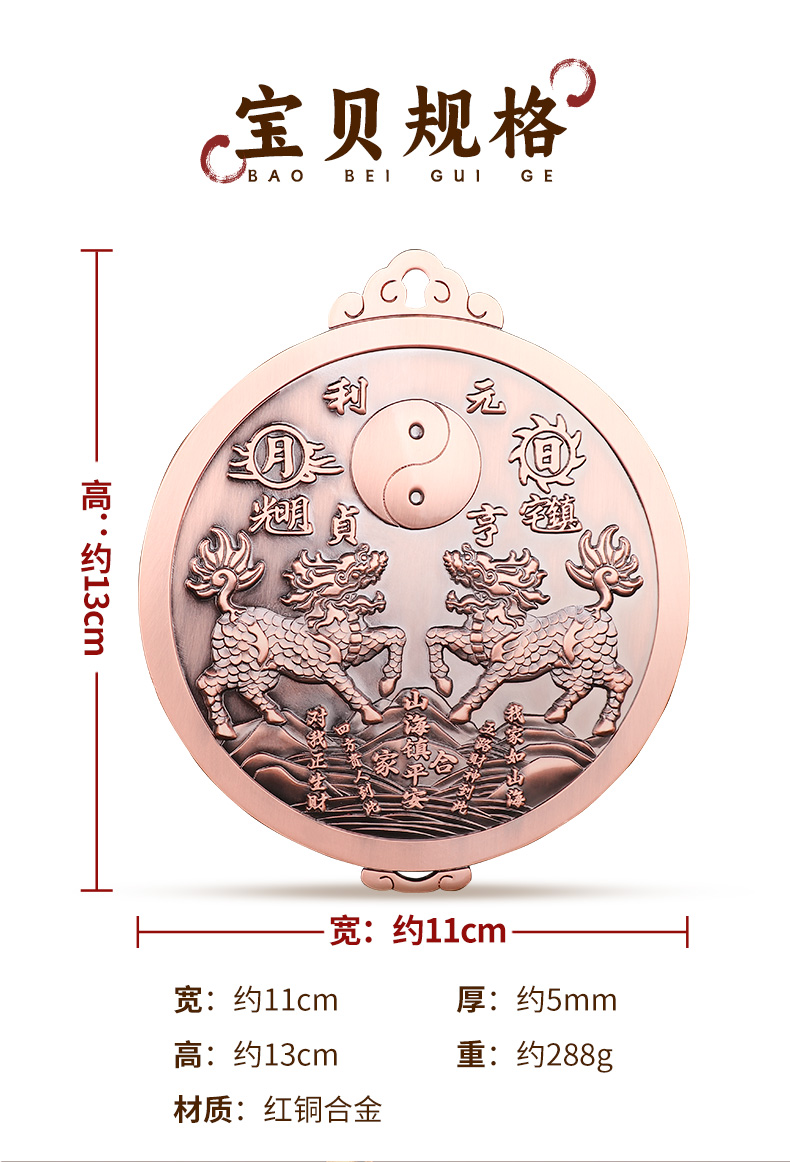 黄铜朱砂五雷紫微讳挂件
