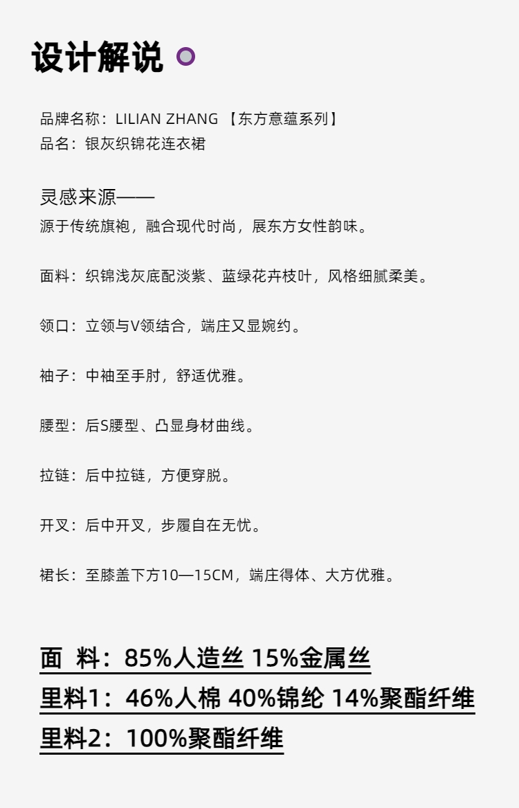 E系列“定制”—「东方意蕴」——“中式老钱”——银灰织锦花连衣裙 2501005