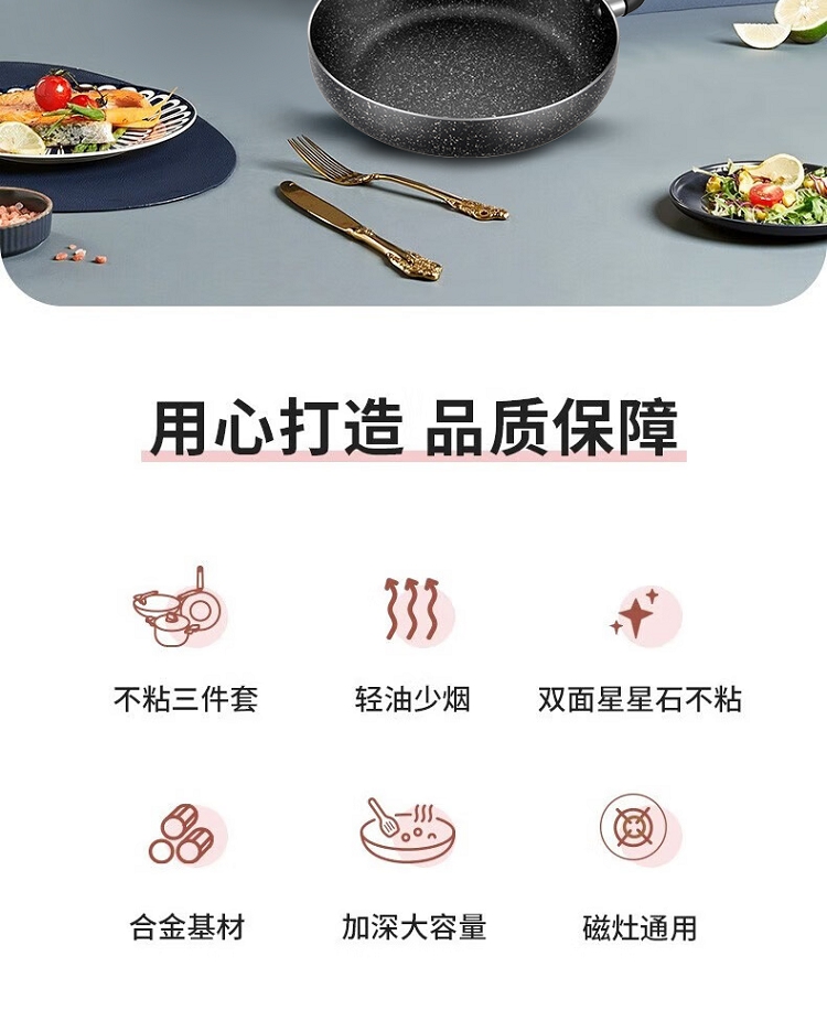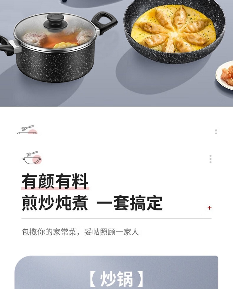 配置 :30cm炒锅+24cm煎锅+20cm汤锅