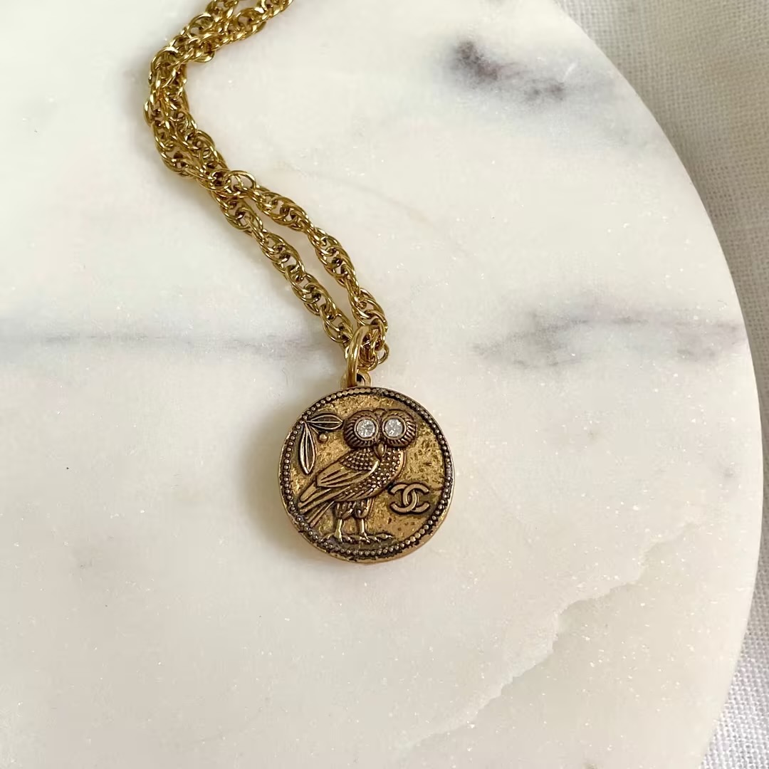 北京仓|Gigi Paris-金色猫头鹰 双C Logo-Vintage纽扣 螺旋链 项链[法国设计师]