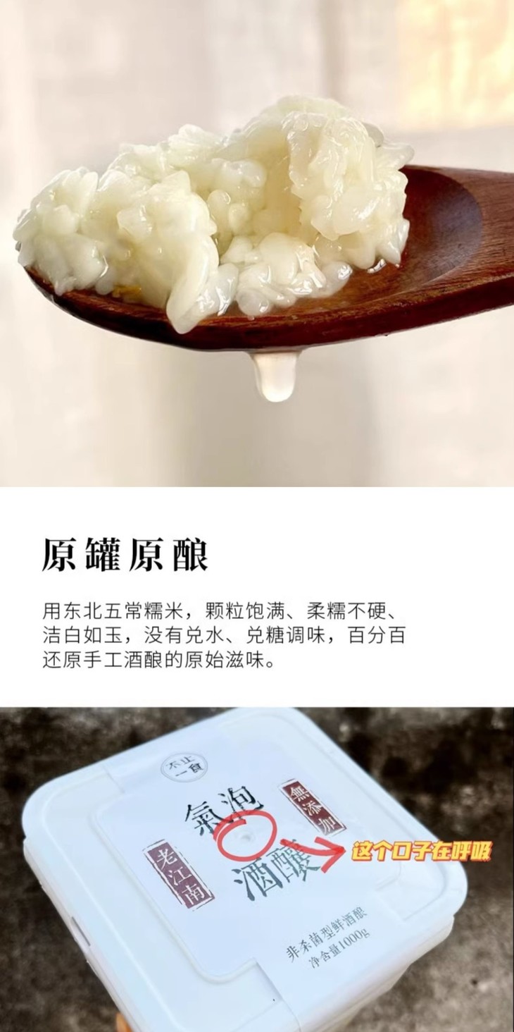 包装也很有巧思,是乐扣乐扣的保鲜盒子,优质的密封性能和厚实的材质,确保了米酒的新鲜度和口感,定制的打孔漏气顶盖,是用特殊材质做的,既能有效防止液体渗漏,又能让米酒在储存过程中自由呼吸,持续发酵,保持最佳品质。而且,盒子还可以重复使用,日常装装干货什么的都可以!
