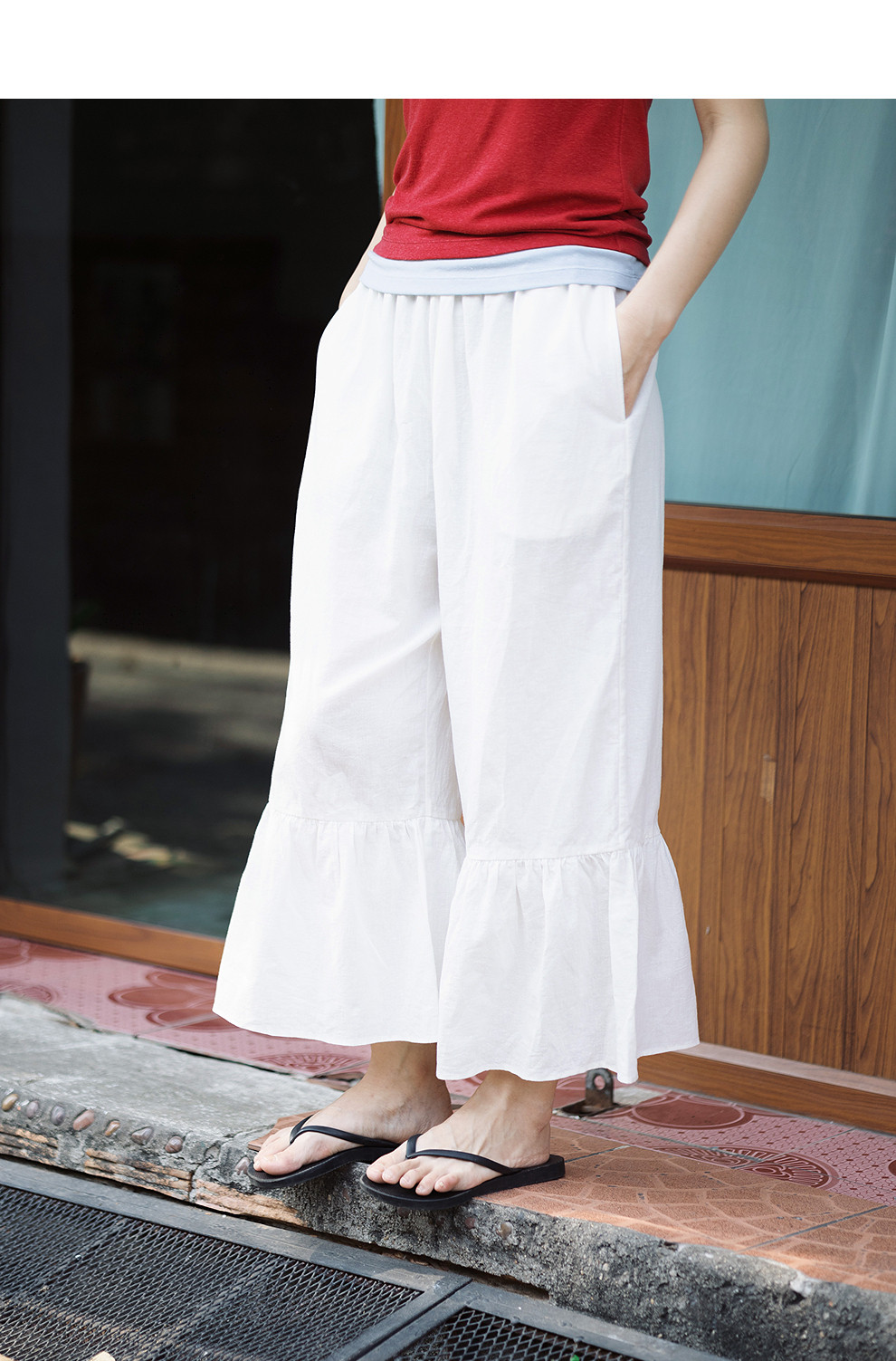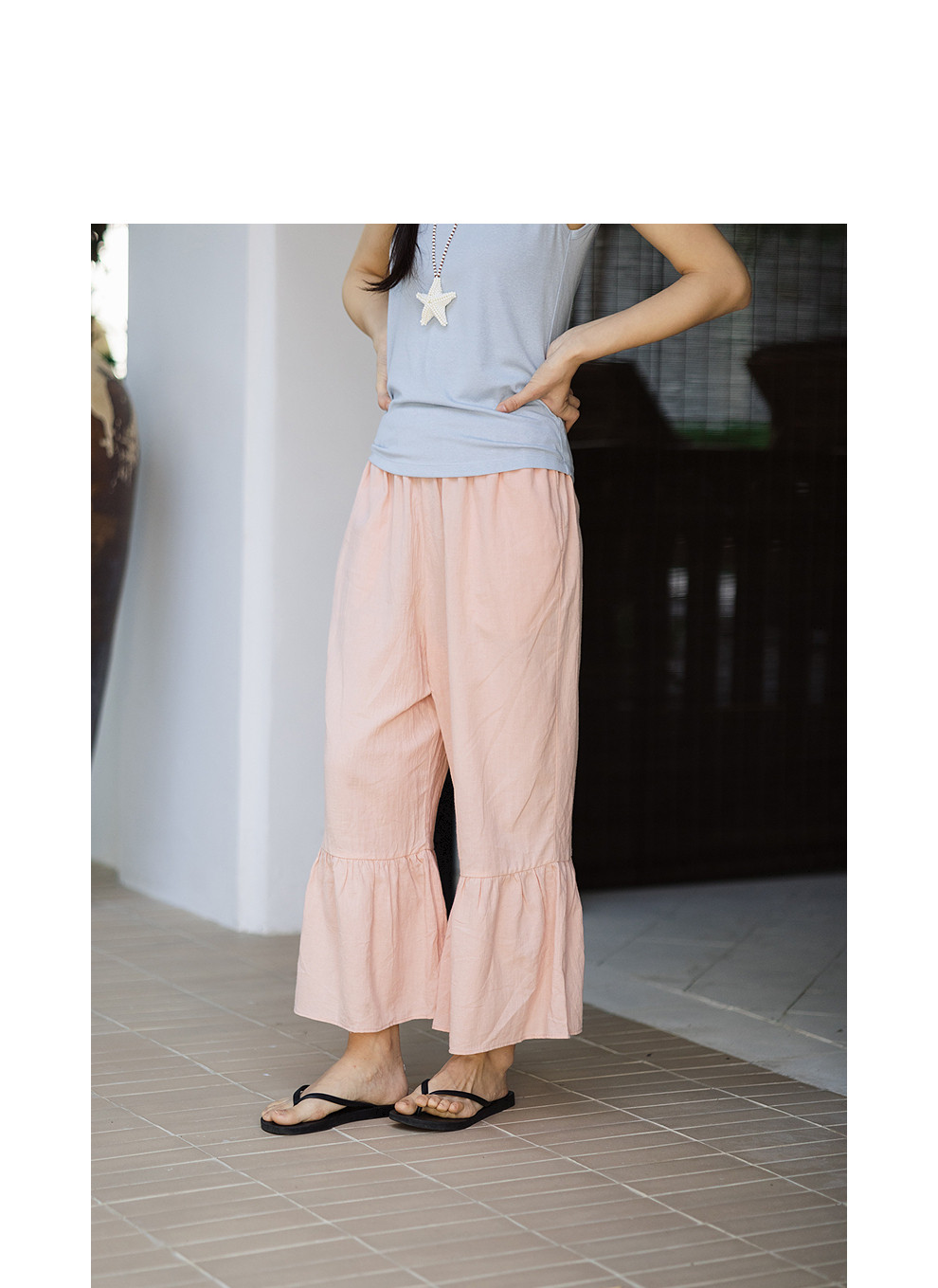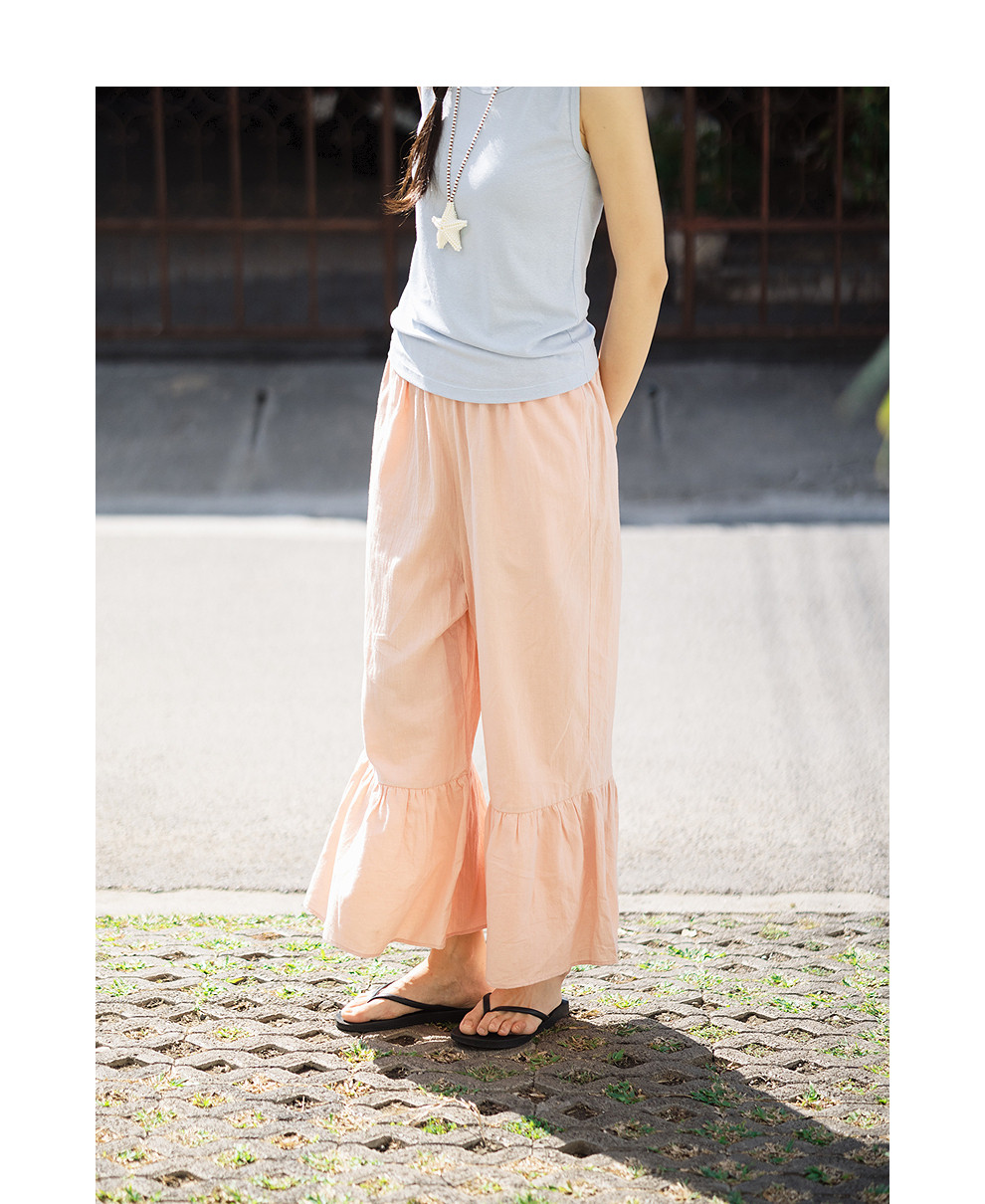 绽放152朵/马蹄裤·亚麻棉全腰松紧脚口花边打底裤女新款休闲裤