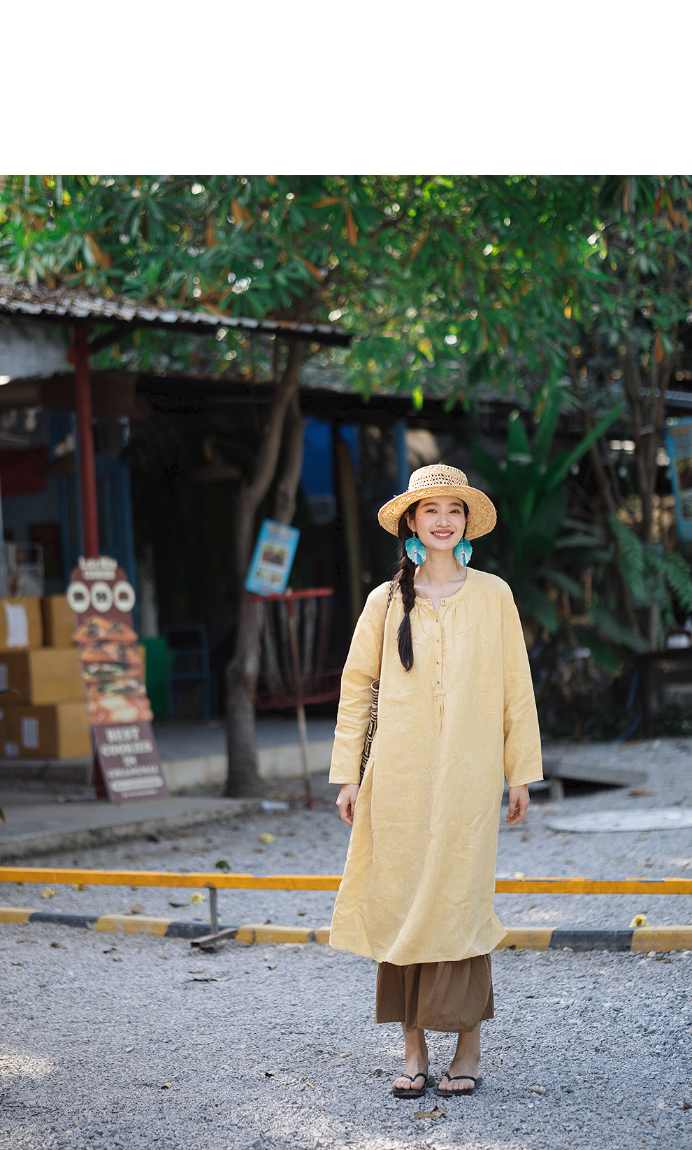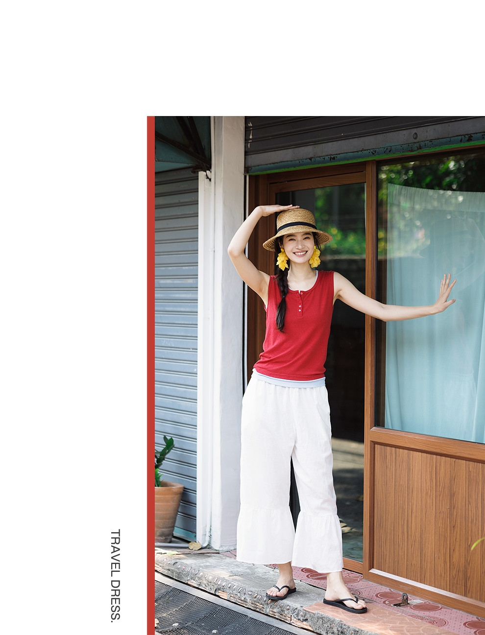 以天然亚麻为载体,融合热烈色彩与自在剪裁为身在城市、心怀远方的女性提供兼具美学与舒适的旅行着装