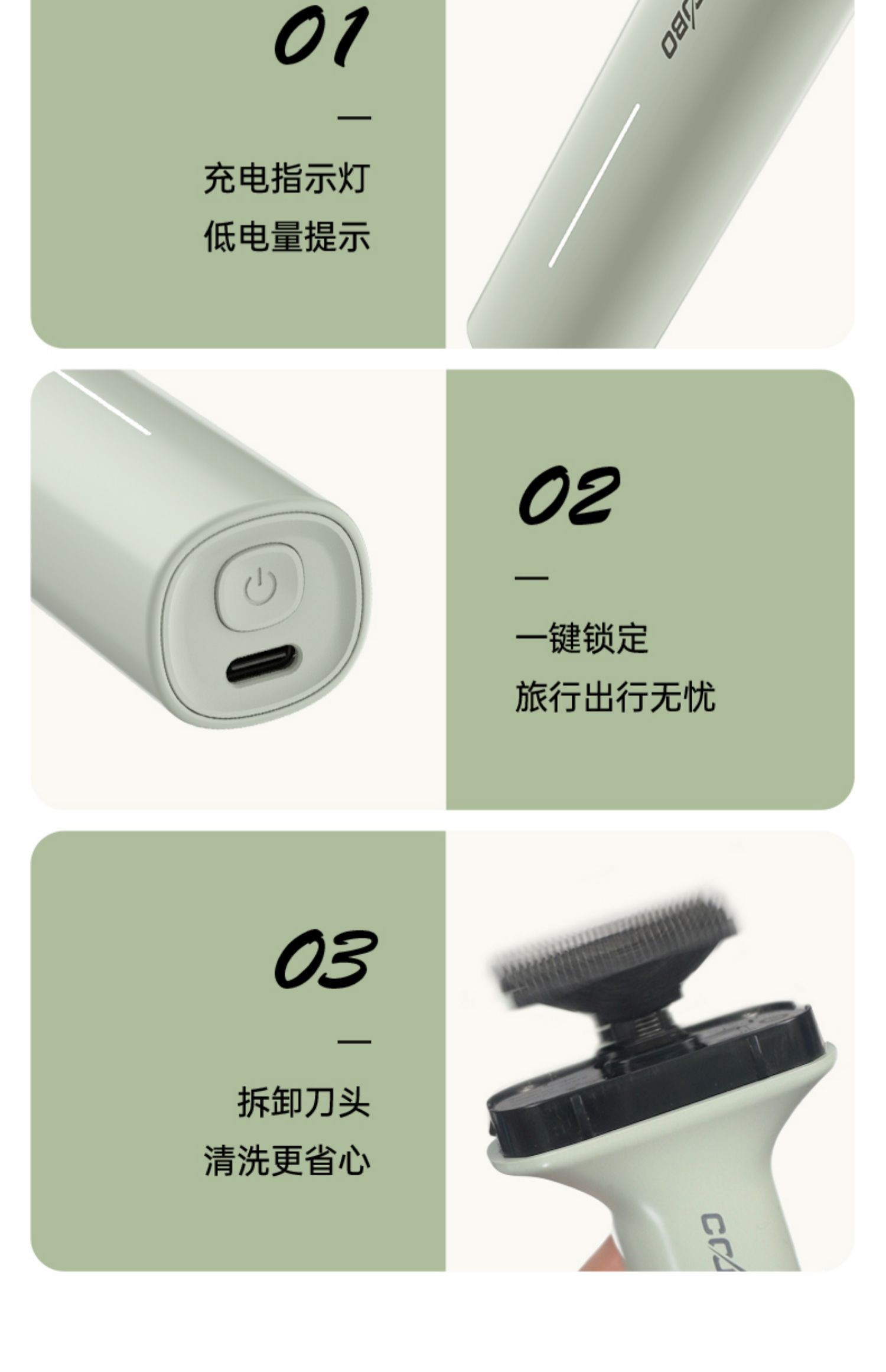 不管长须短须,还是粗须细须,都和手动剃的一样干净。胡子,头发都能用,一个剃须刀=剃须刀+理发器。