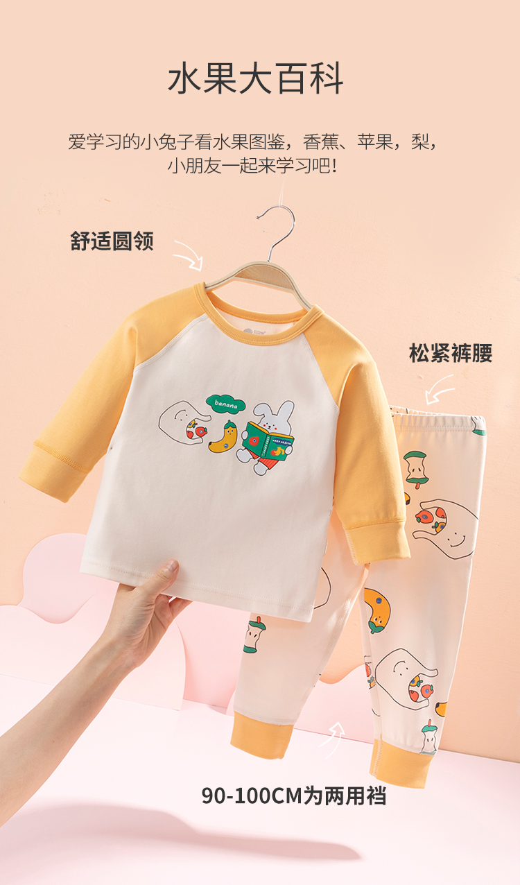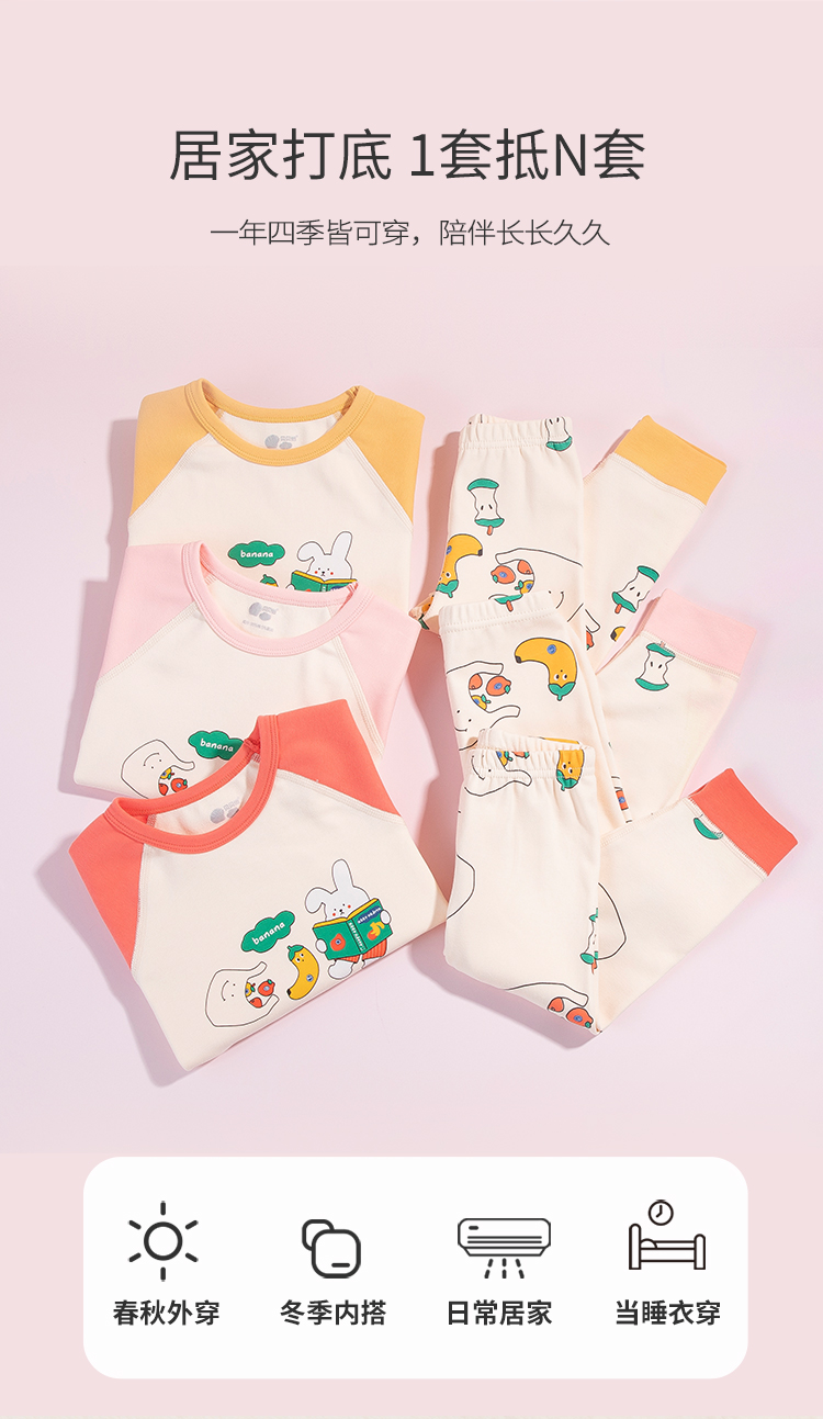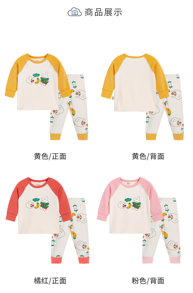 贝贝怡女宝宝内衣套装春秋装儿童睡衣婴儿家居服女童秋衣秋裤套装223T2523