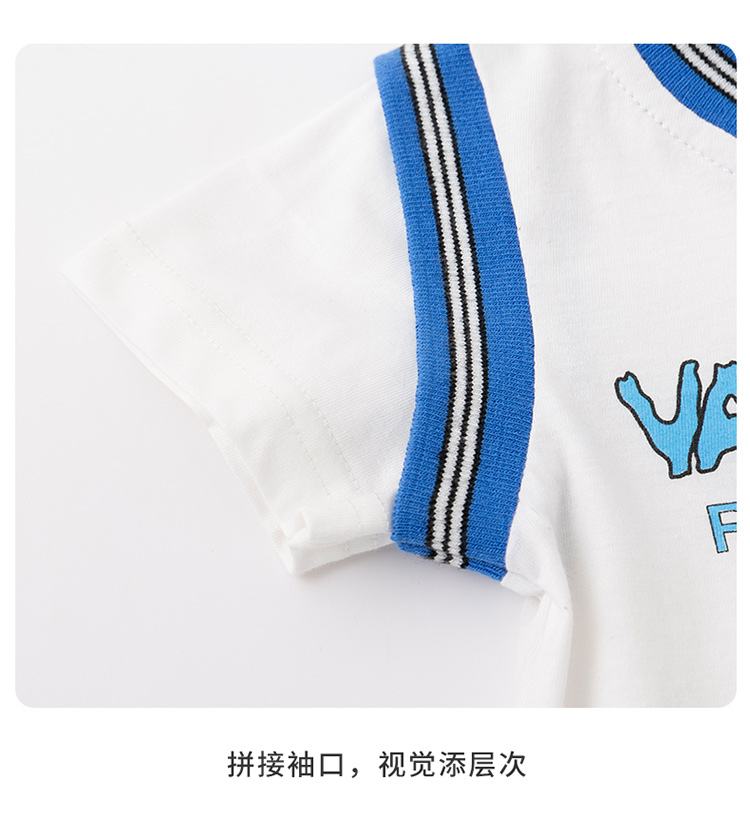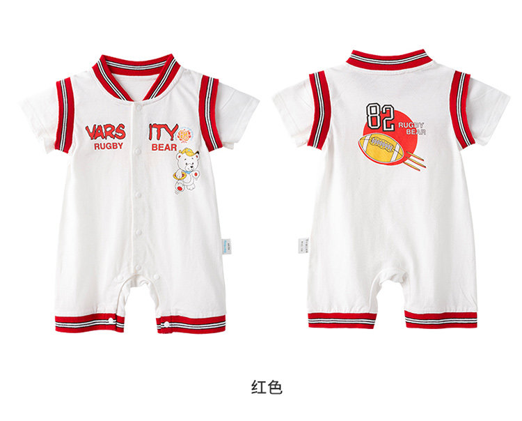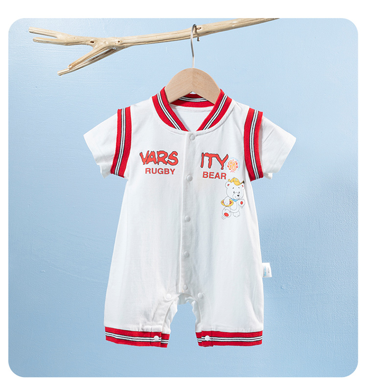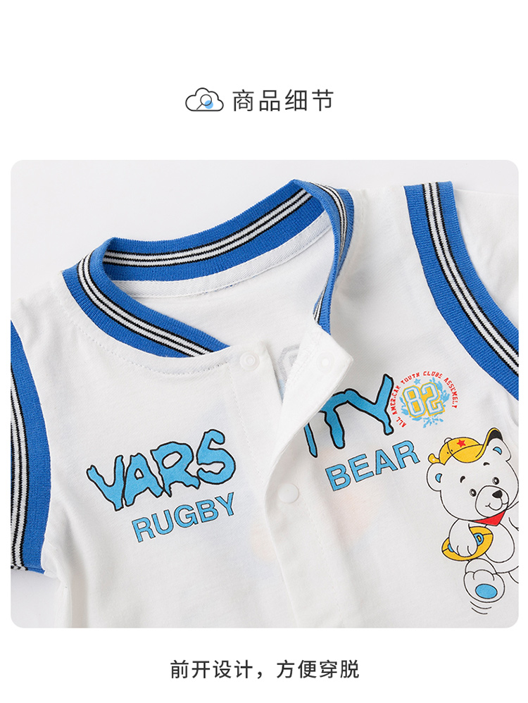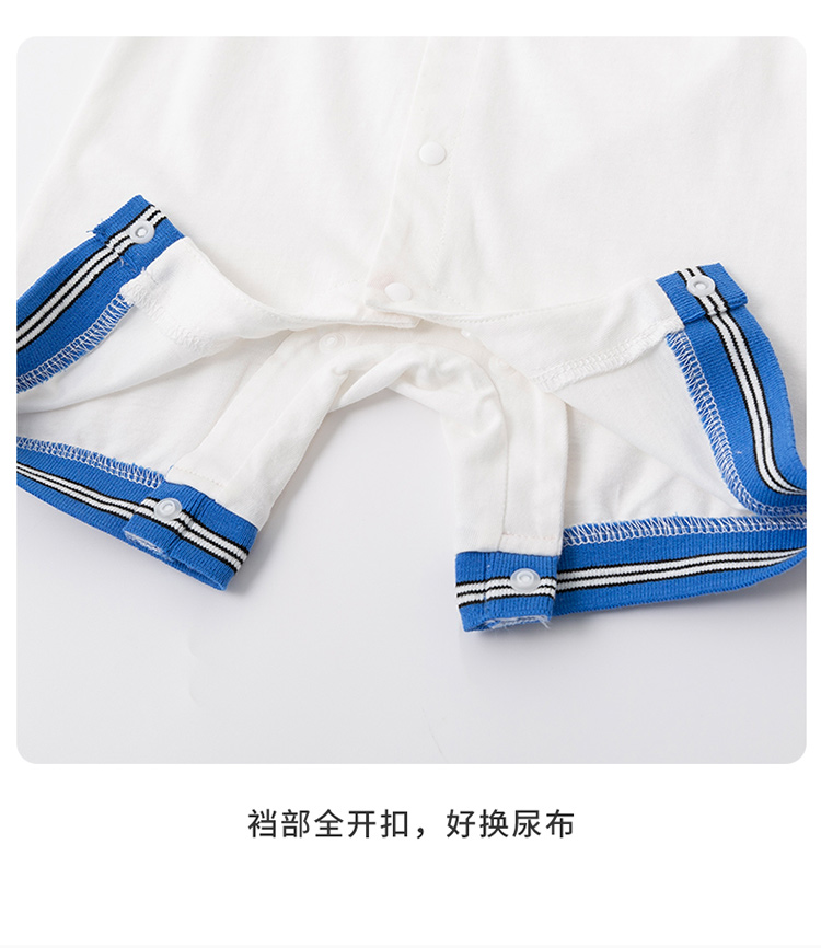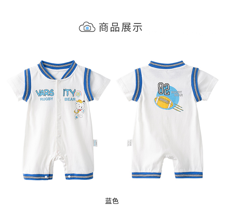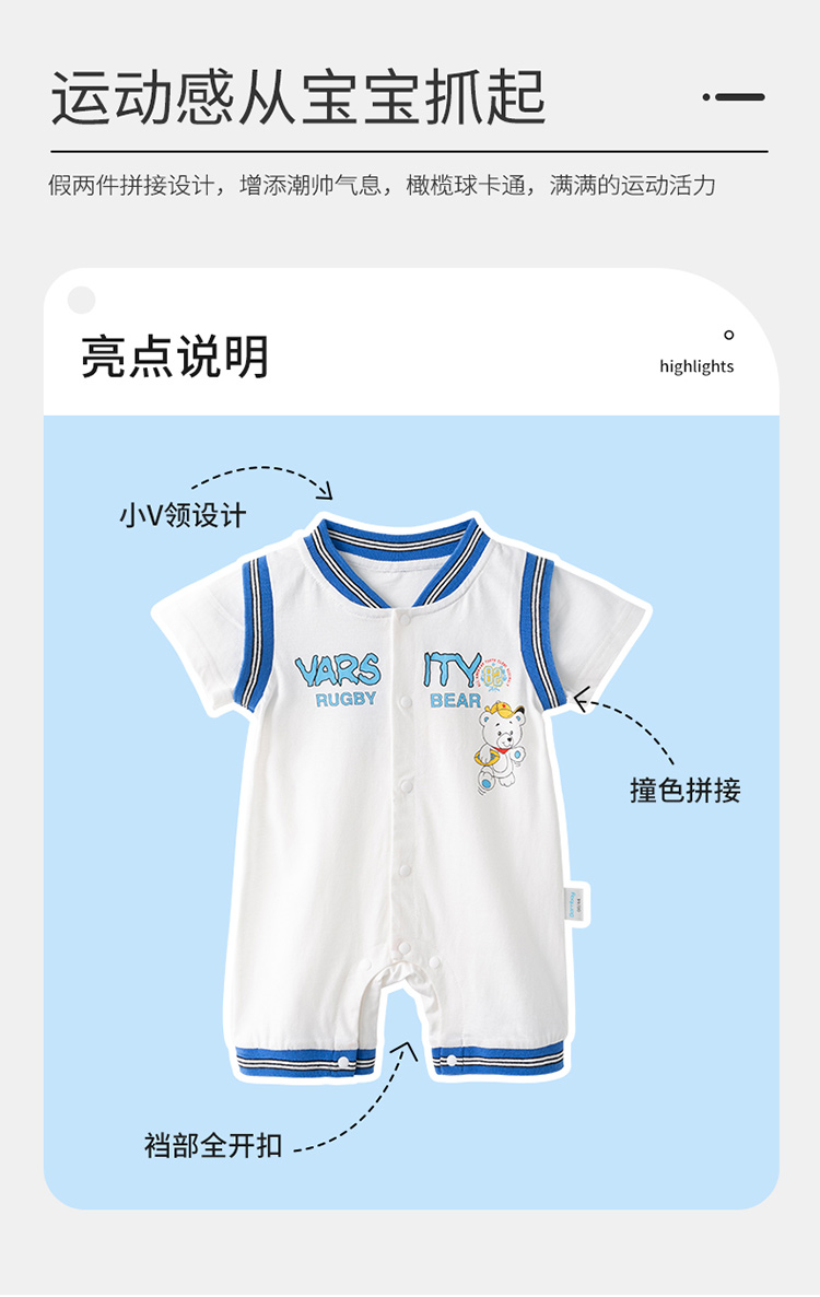 贝贝怡假两件撞色拼接前开连体衣婴儿运动风纯棉哈衣夏季短袖爬服232L2042