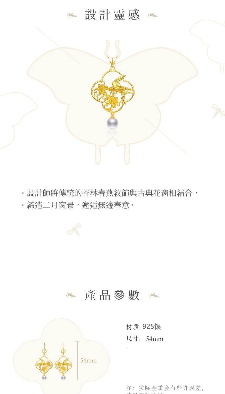 杏林春燕 镂空原创耳饰花窗耳环珍珠 国风复古少女