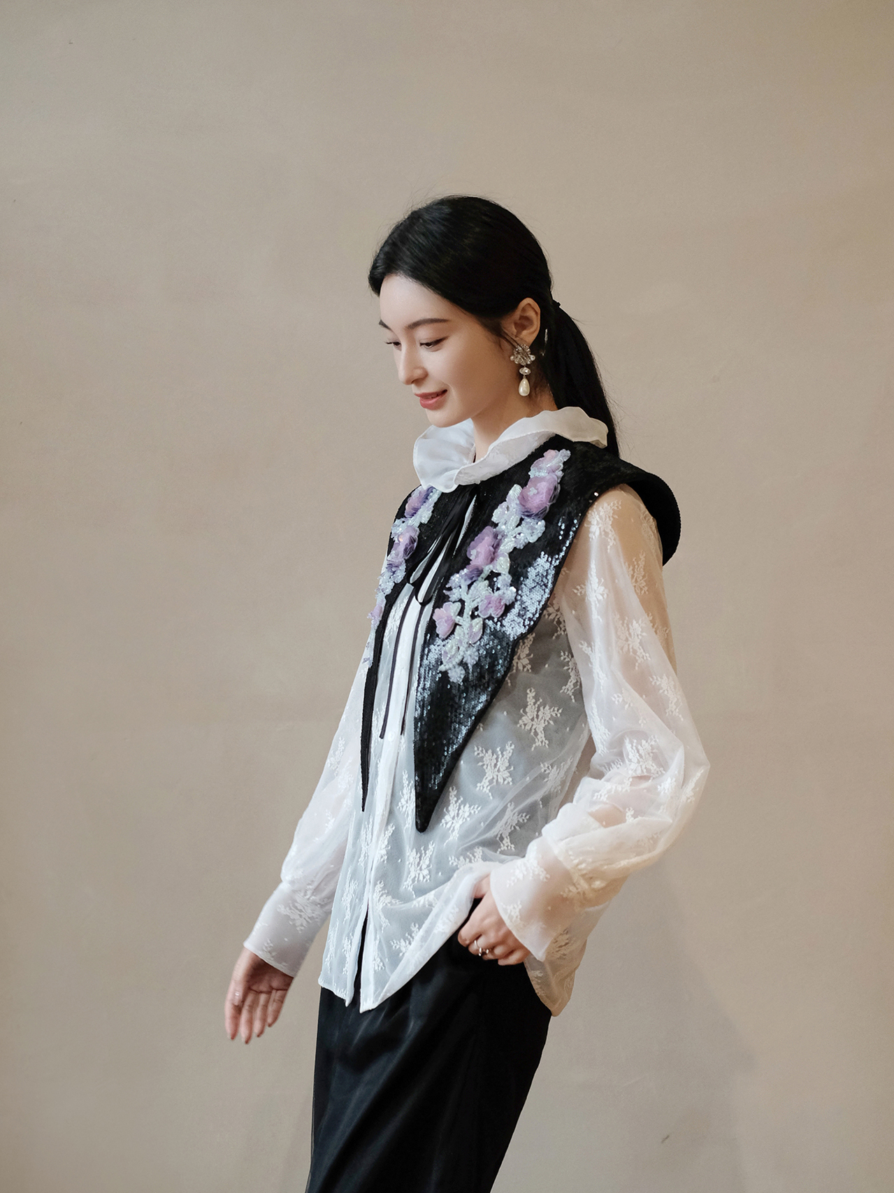 盛唐牡丹 | 时髦玉扣花香引蝶对襟女衬衫
