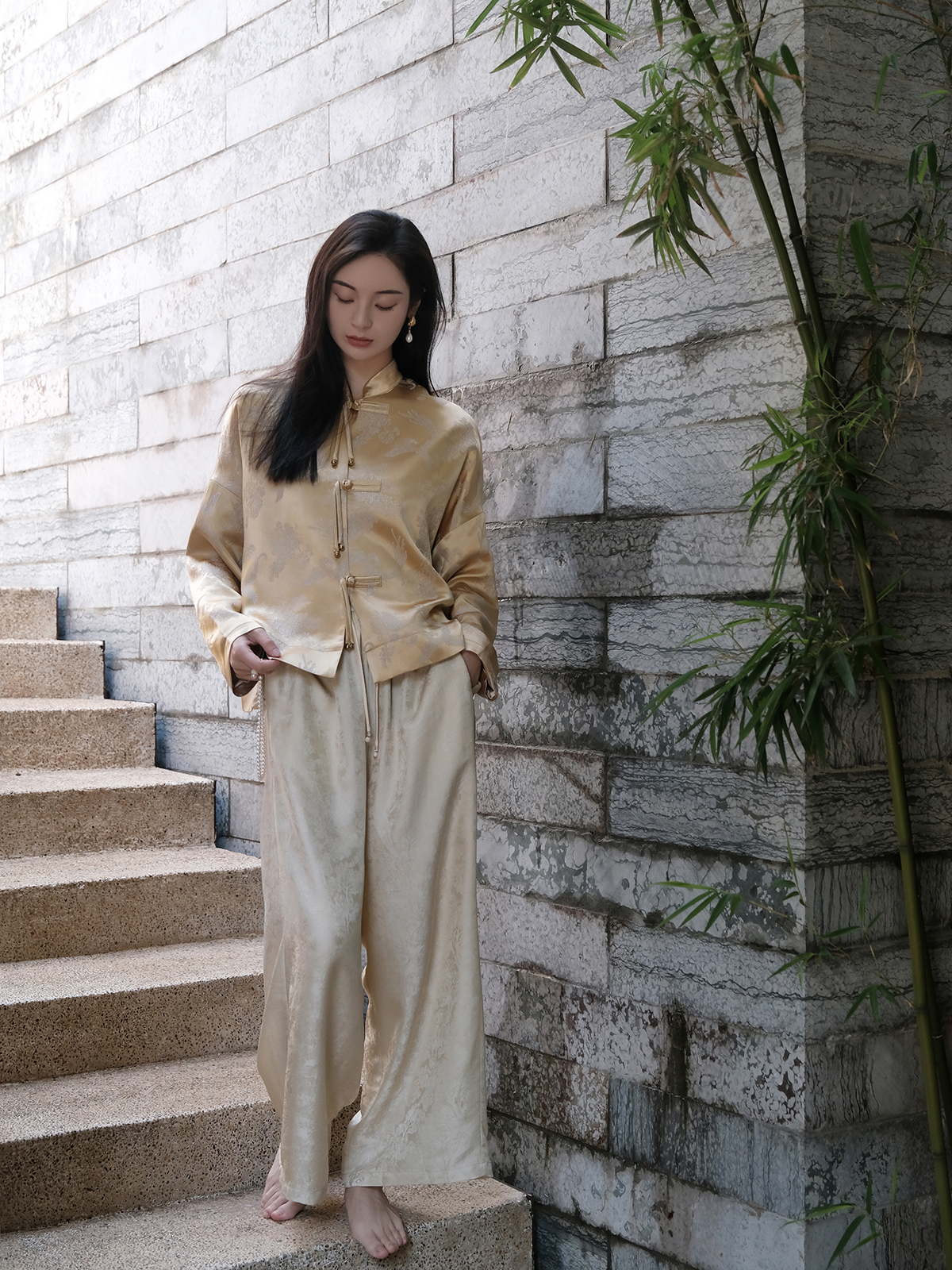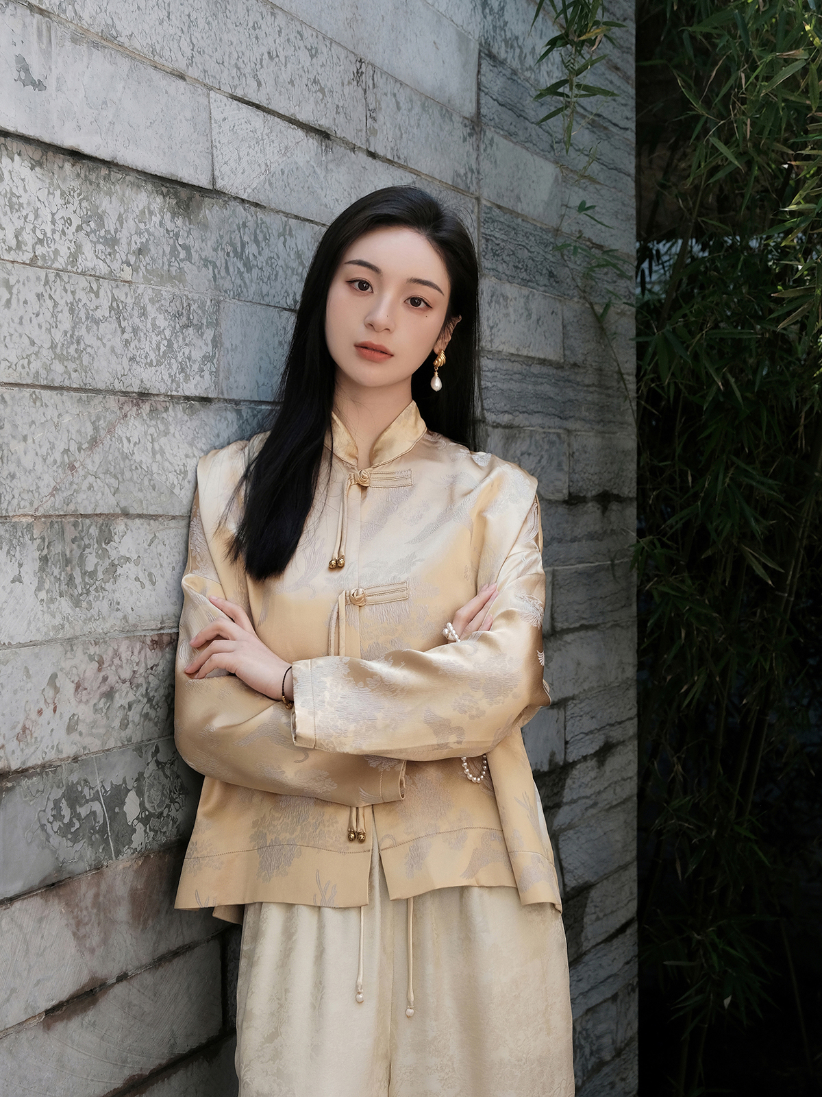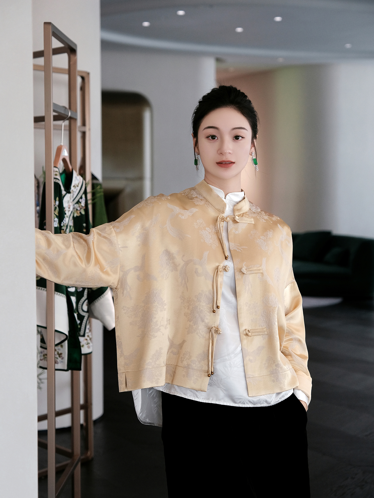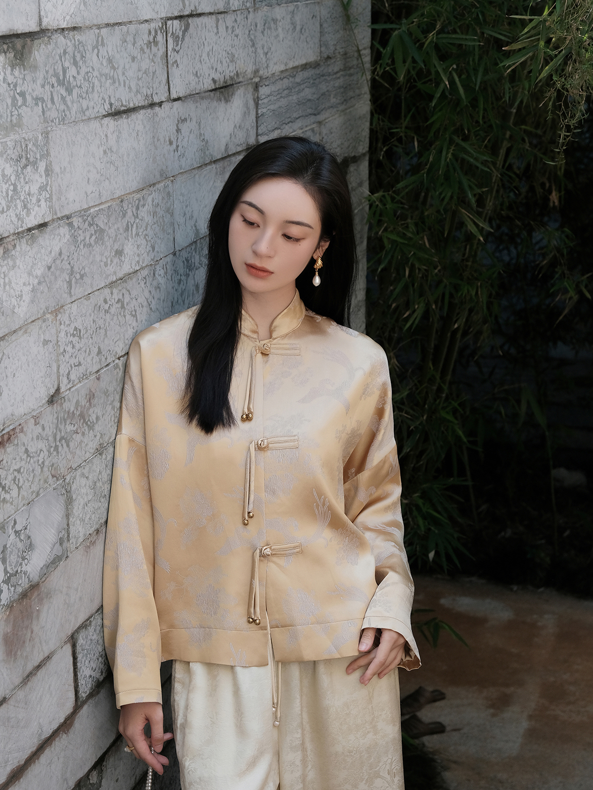 盛唐婧 |凤戏牡丹流苏铜扣外套