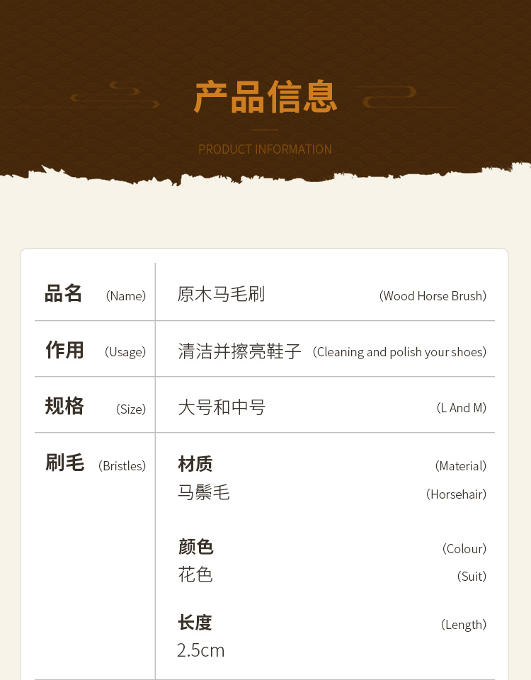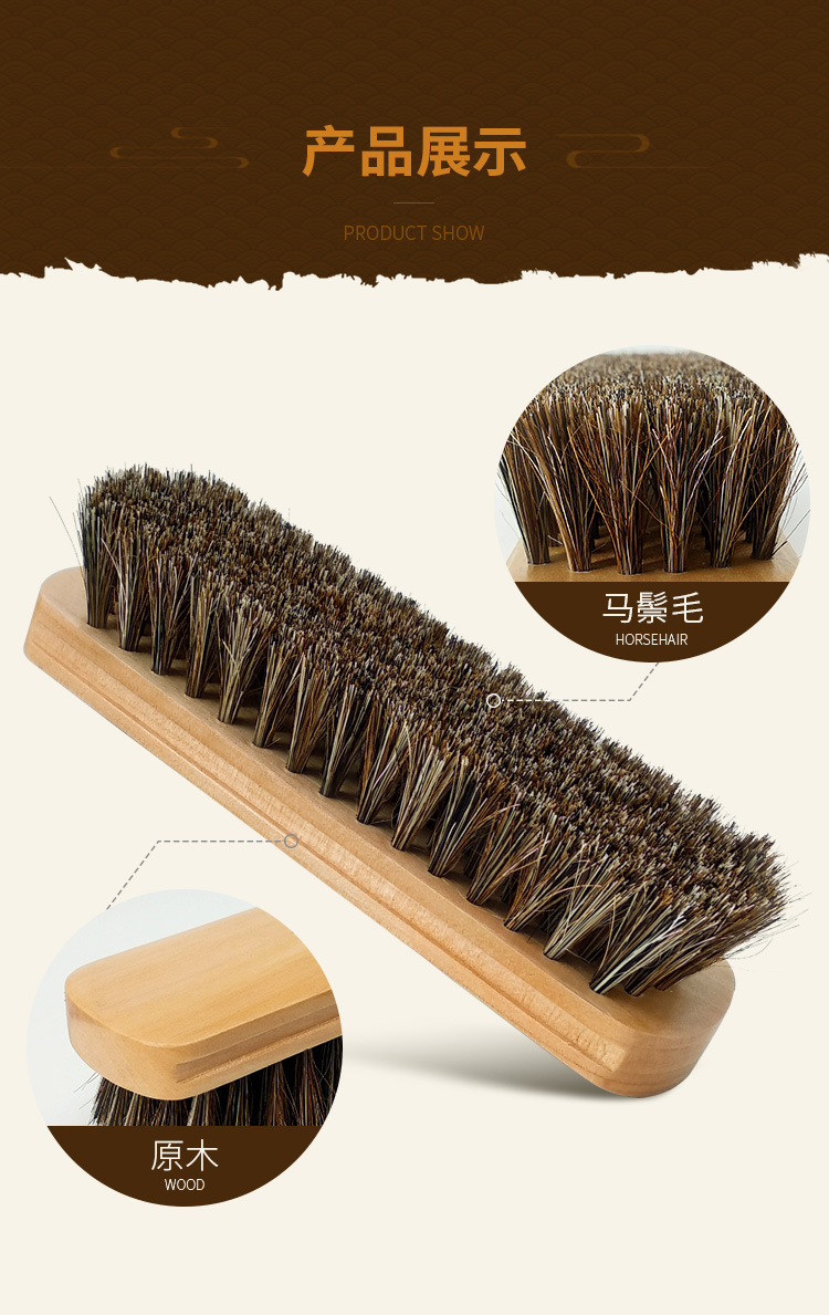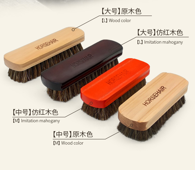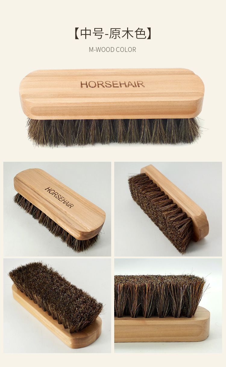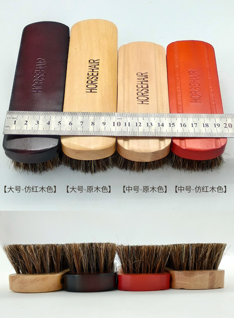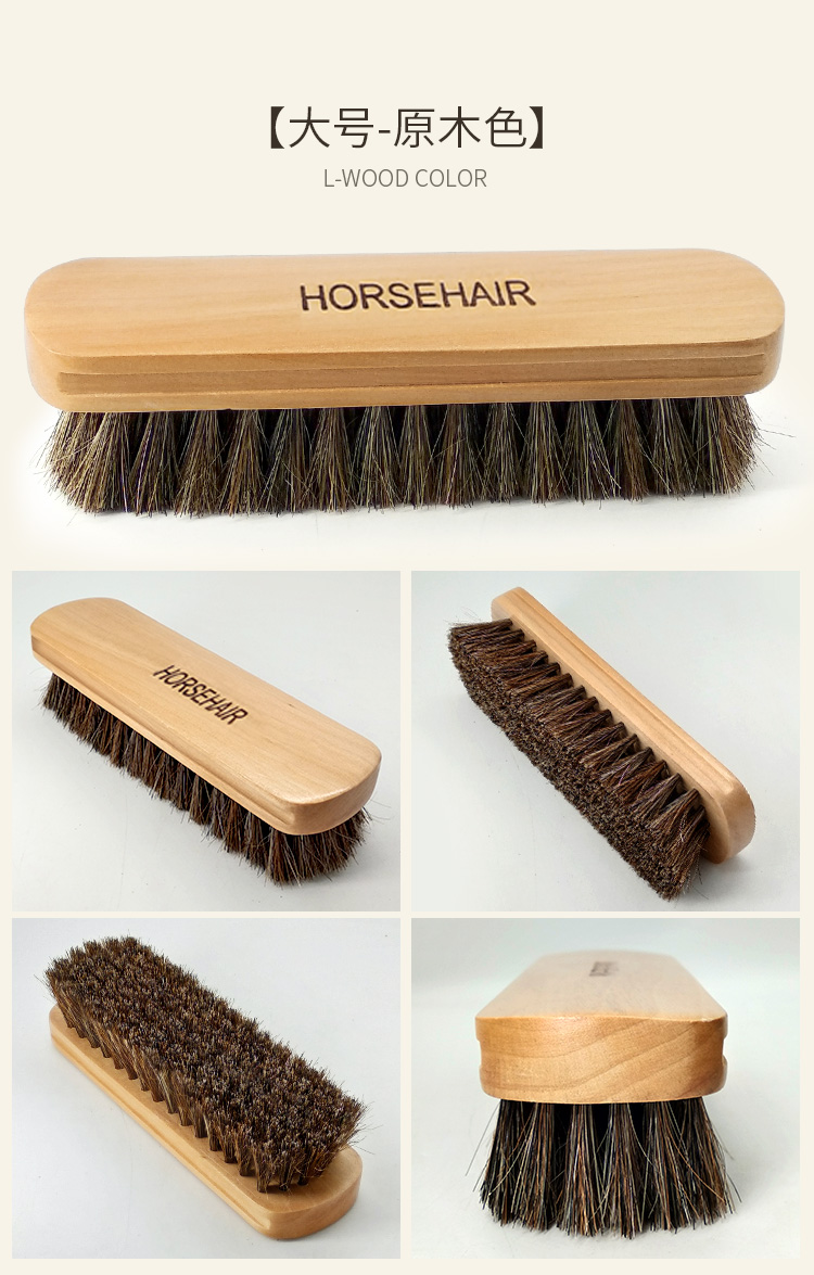 原木大号中号马毛刷 鞋刷