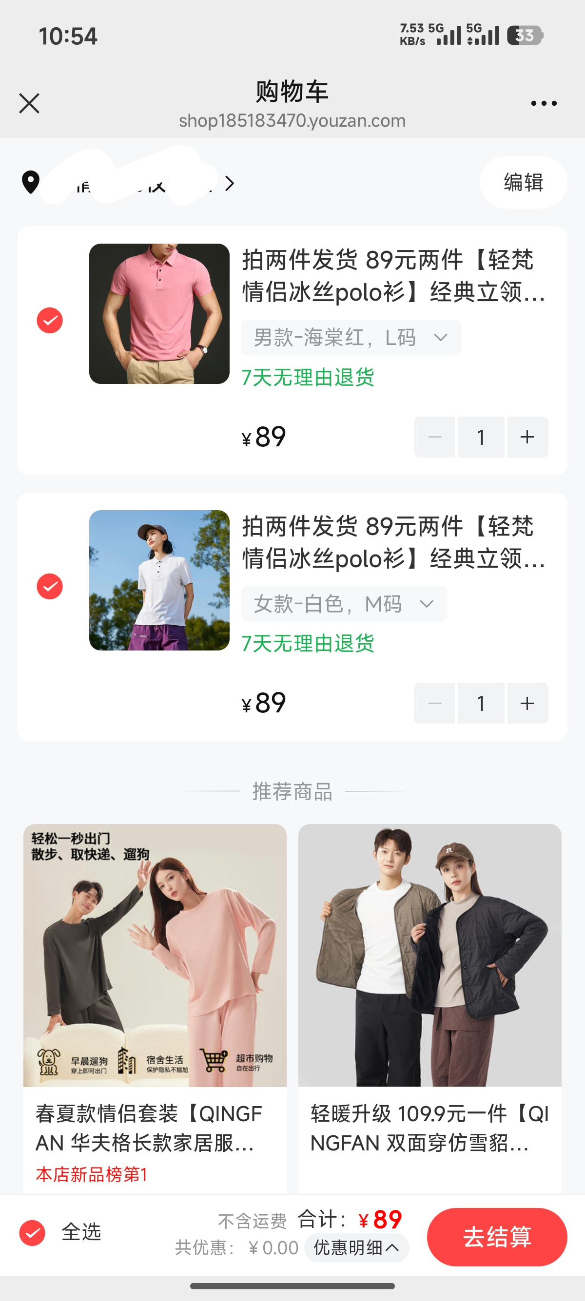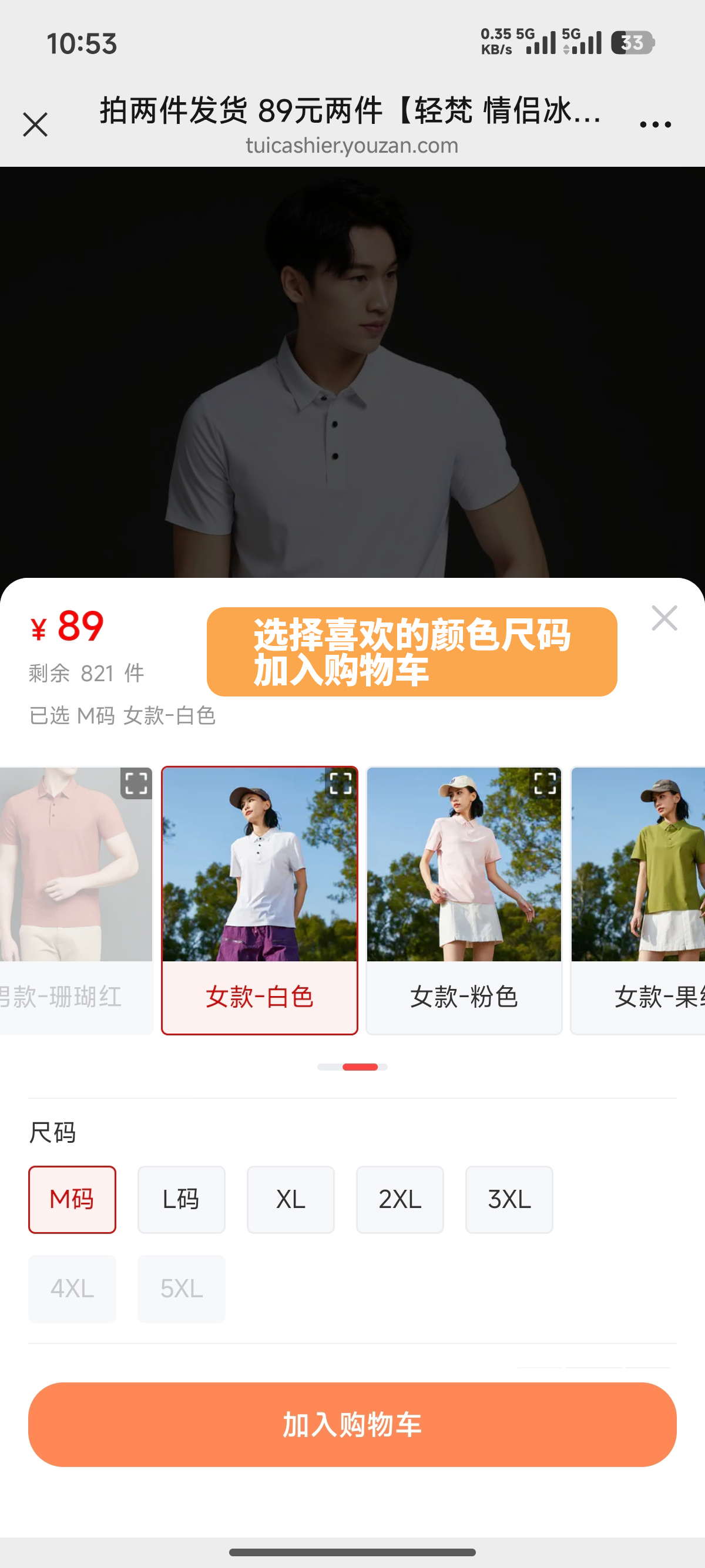 选择喜欢的颜色尺码加入购物车,2件下单发货哦!如下图