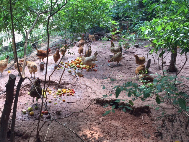 朴田农场实行种养结合的环保模式,以山林地生态放养健康土鸡为主,收集鸡粪长时间微生物发酵,制作有机肥。用于种植玫瑰、无花果、水果番茄以及少量蔬菜。同时,农场种植的果蔬为放养鸡提供了新鲜的青绿饲料,放养鸡为果蔬提供有机肥,从而形成种养循环链,整个农场生产无废弃物,对环境不造成污染。