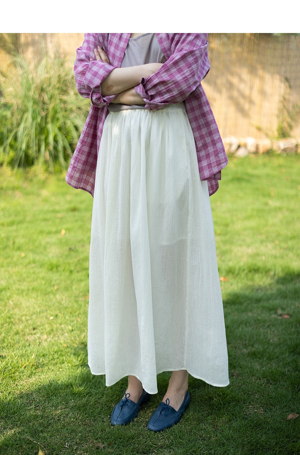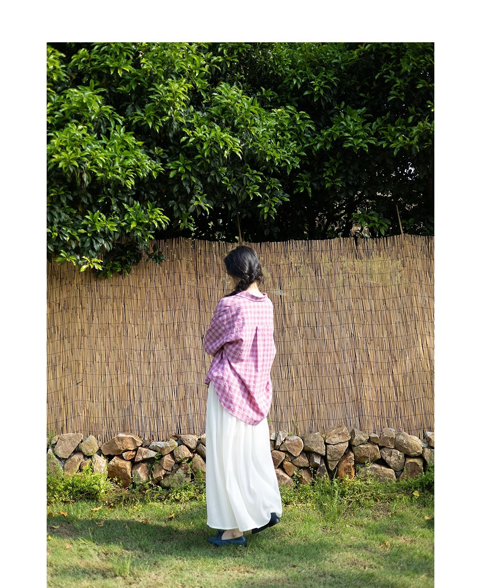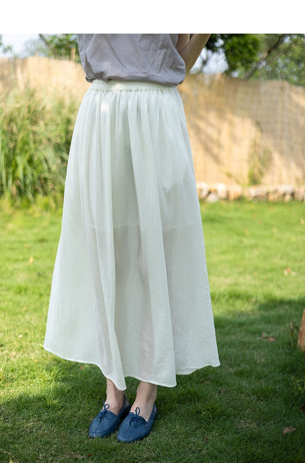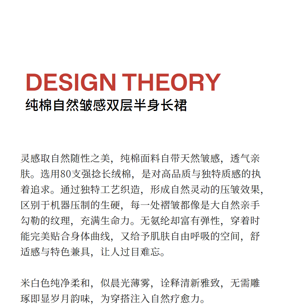 绽放旅行女装355朵/纯棉自然皱感双层半身长裙高腰松紧半身裙子女