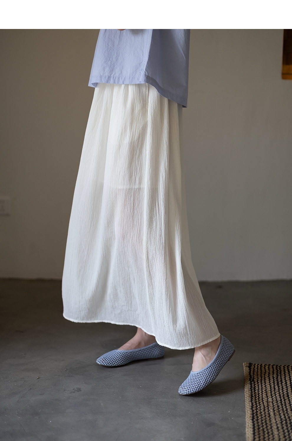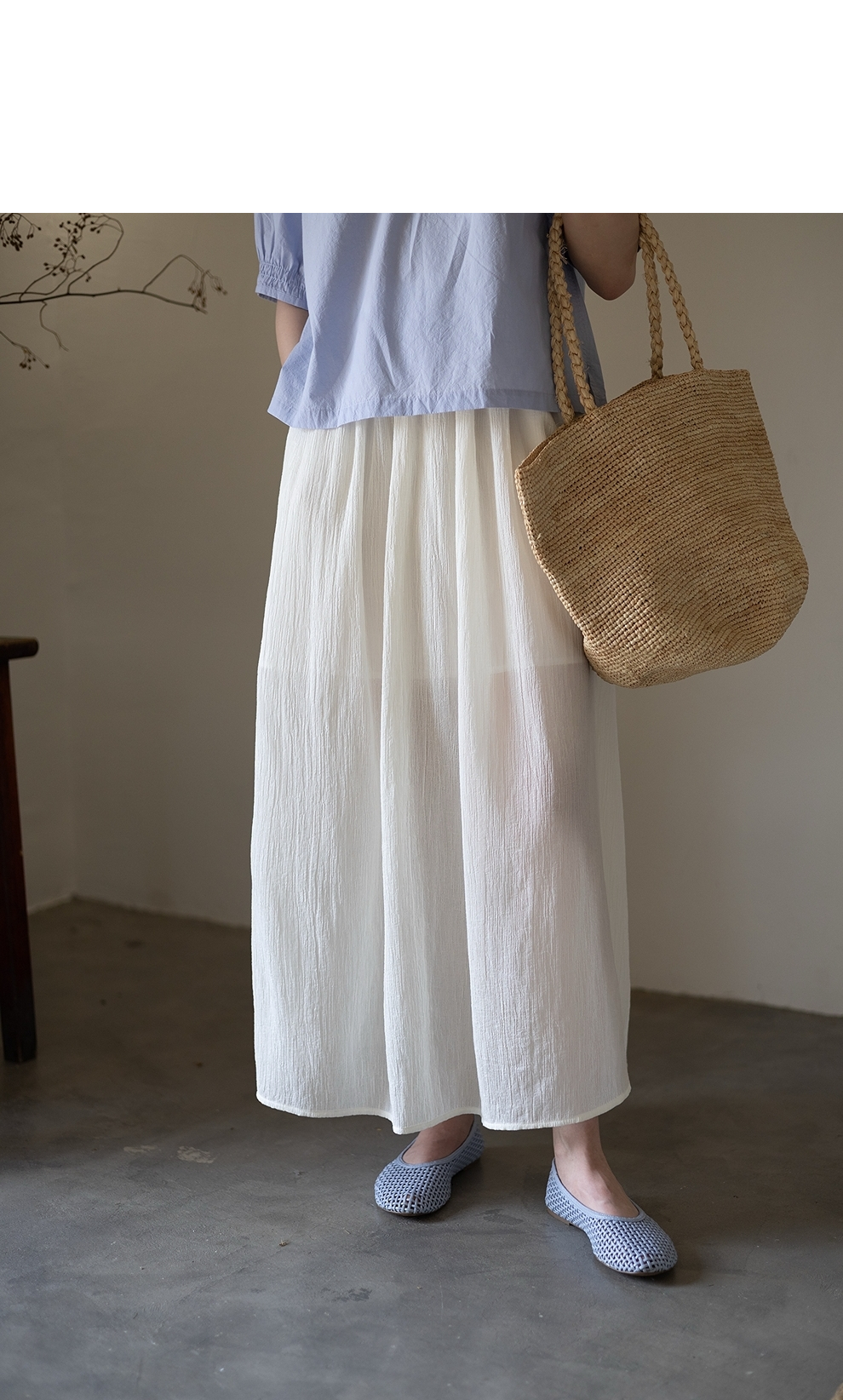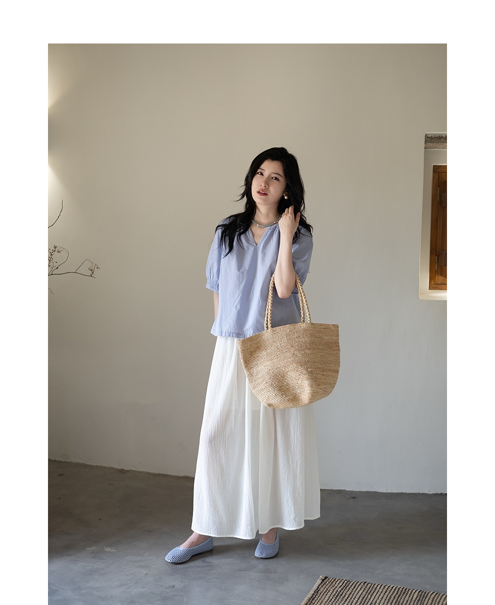 绽放旅行女装355朵/纯棉自然皱感双层半身长裙高腰松紧半身裙子女