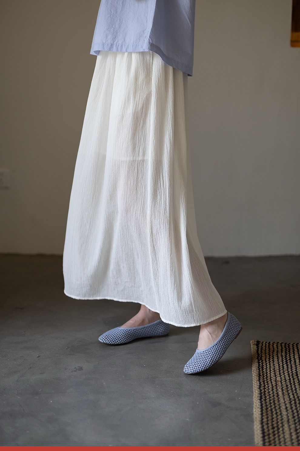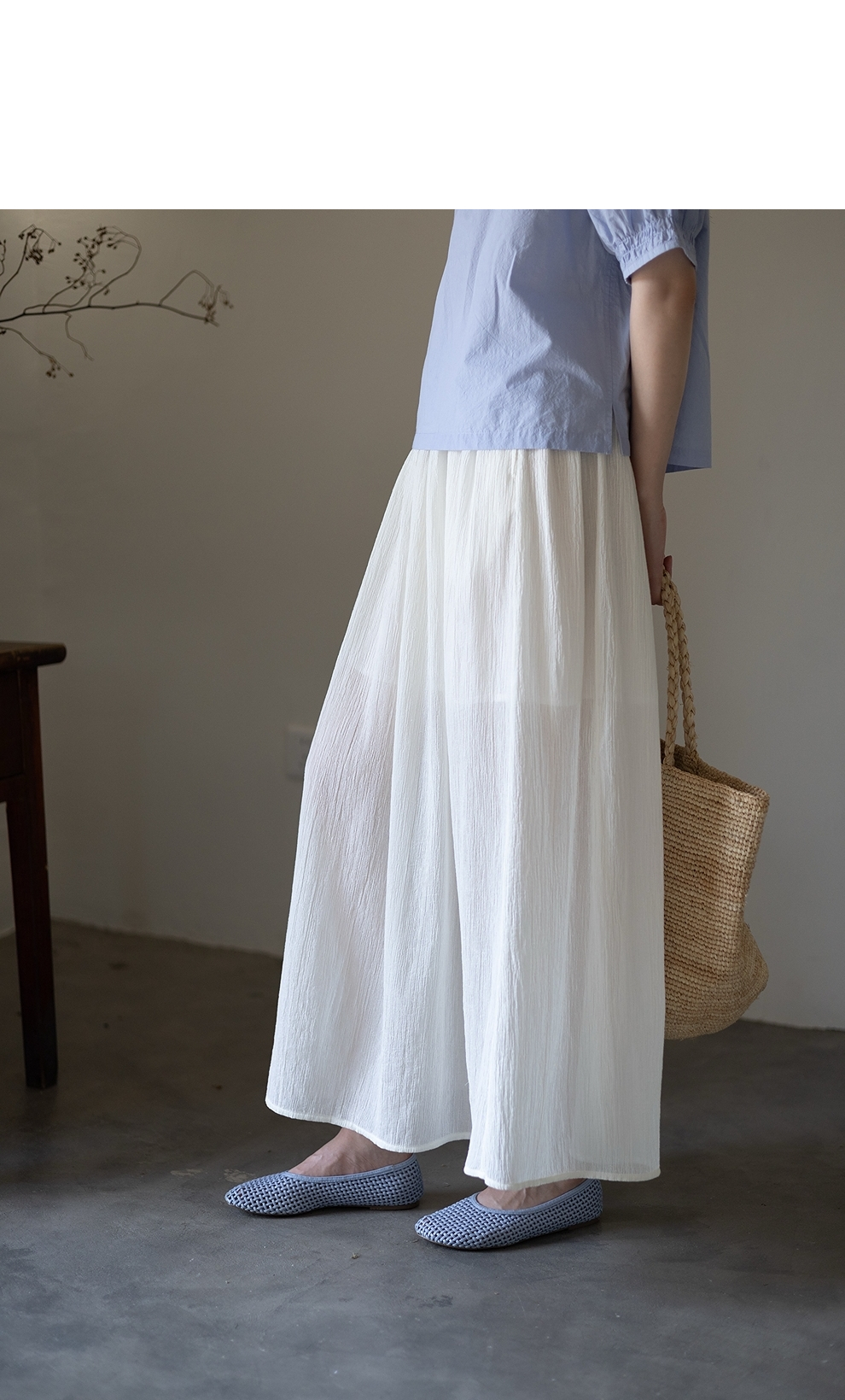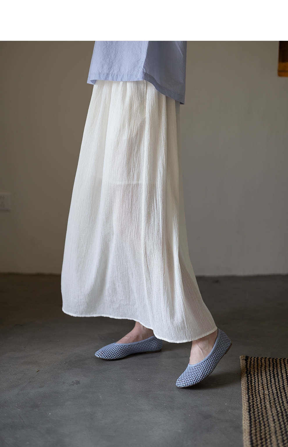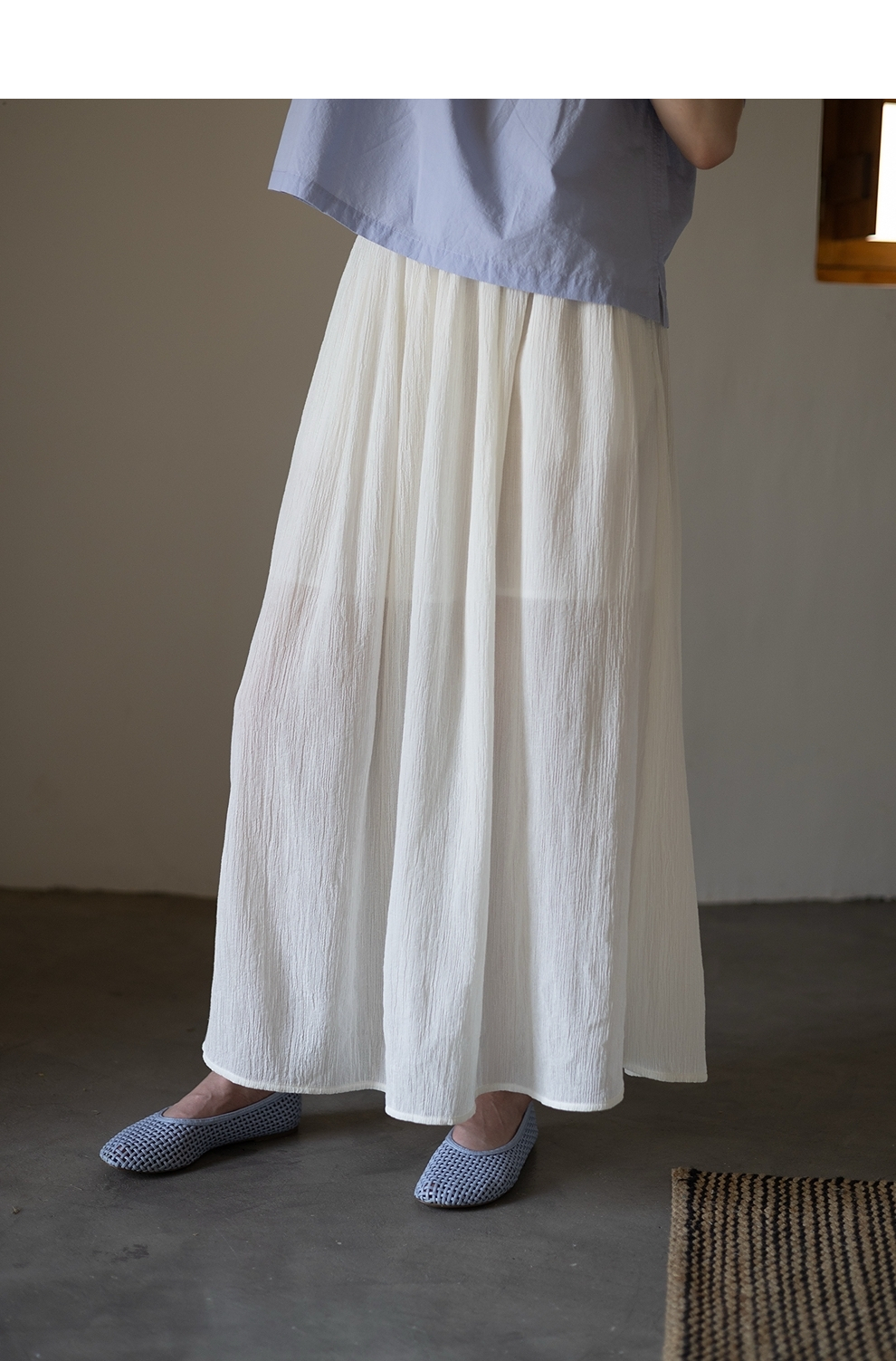 绽放旅行女装355朵/纯棉自然皱感双层半身长裙高腰松紧半身裙子女