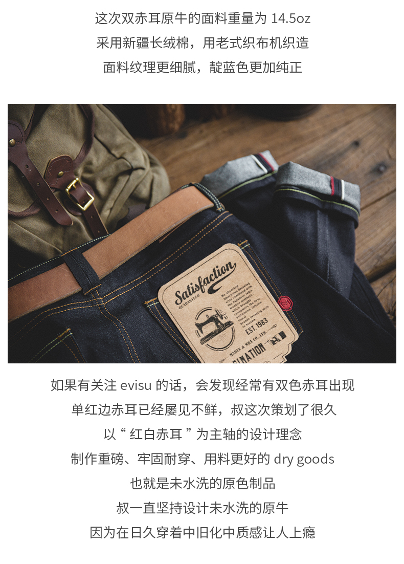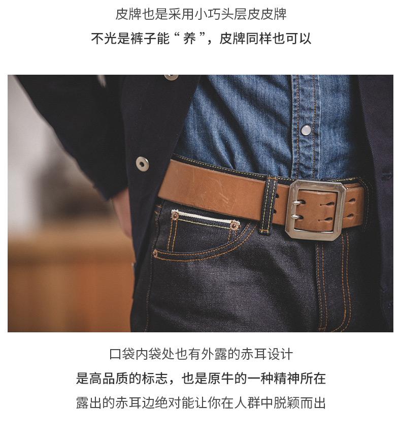 工装优选 美式vintage双赤耳修身原牛复古阿美咔叽直筒丹宁牛仔裤