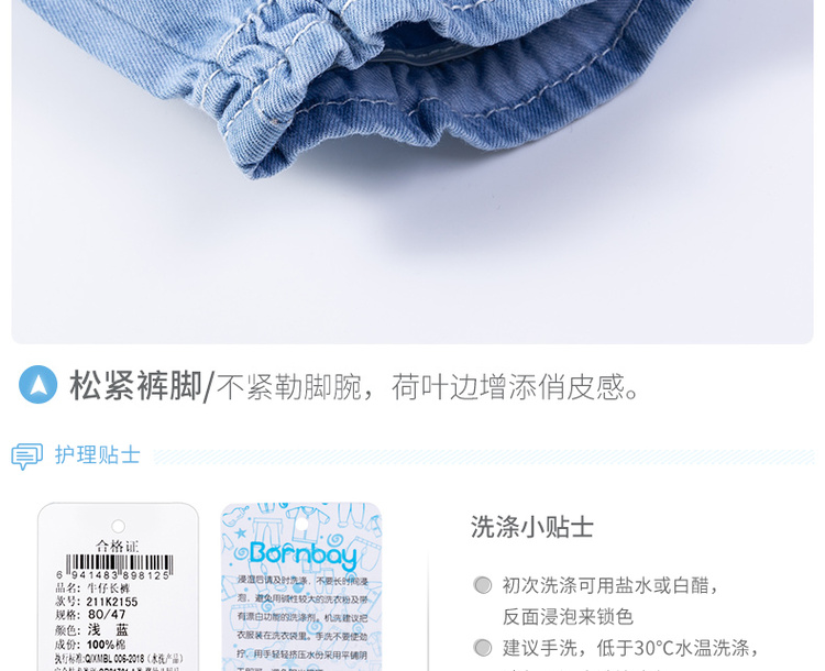 贝贝怡春季新品女宝宝休闲裤宽松束脚牛仔裤211K2155