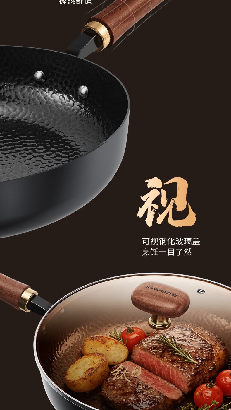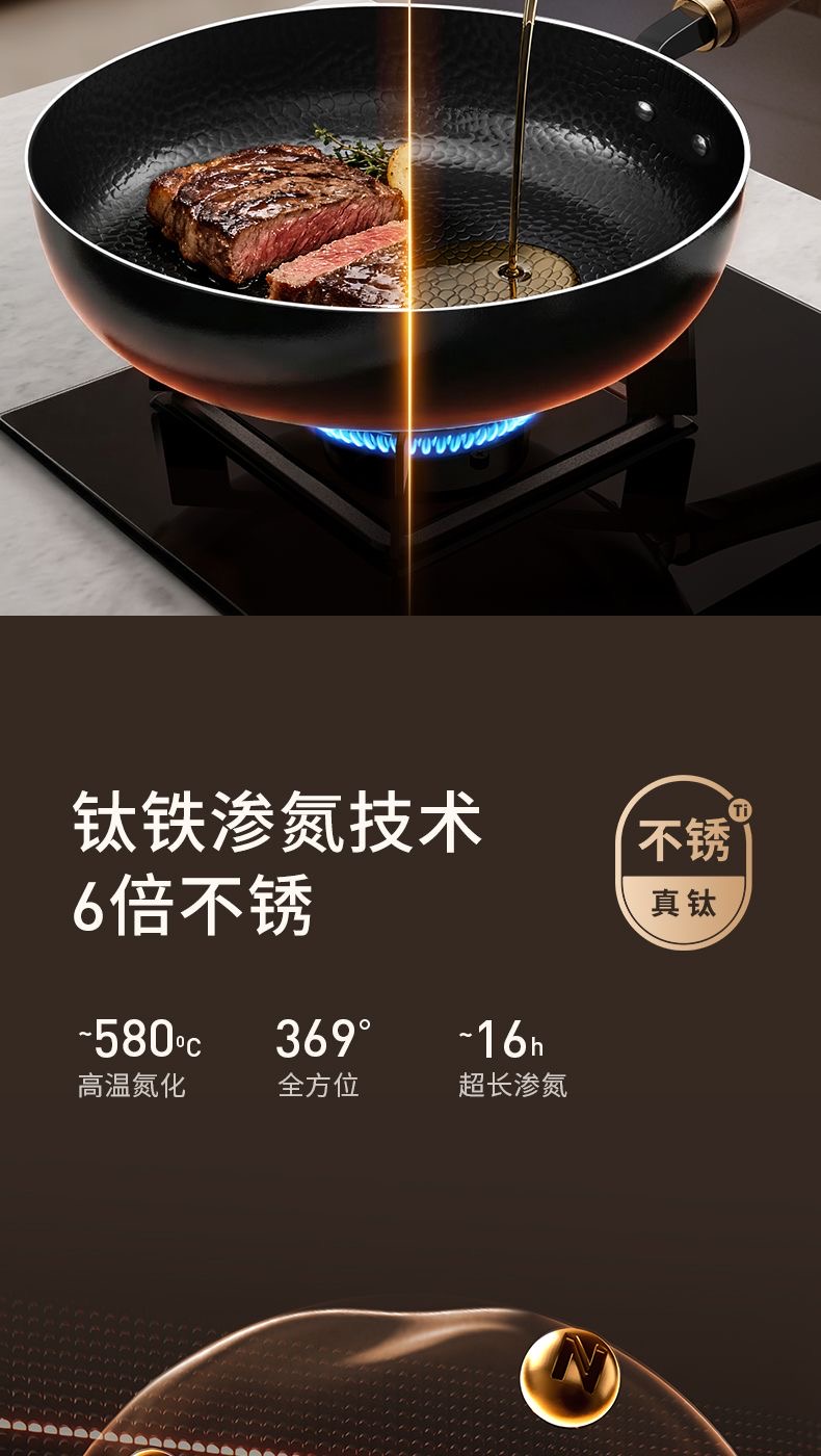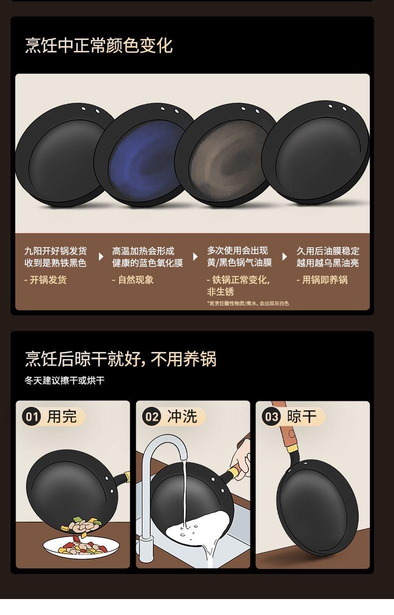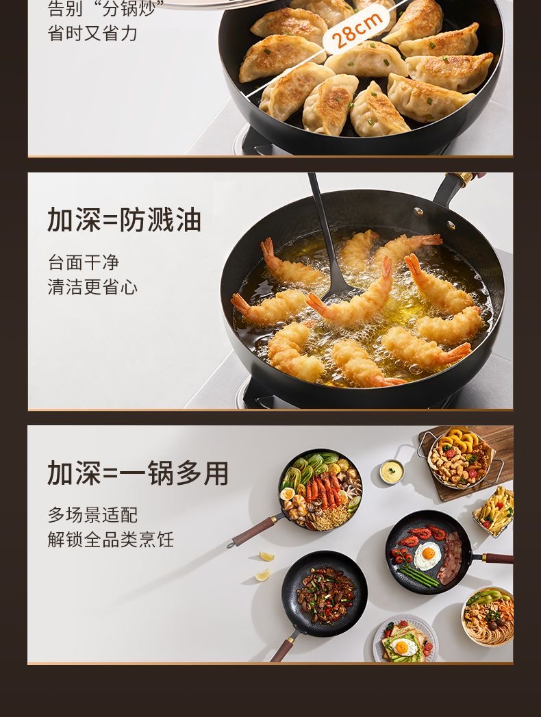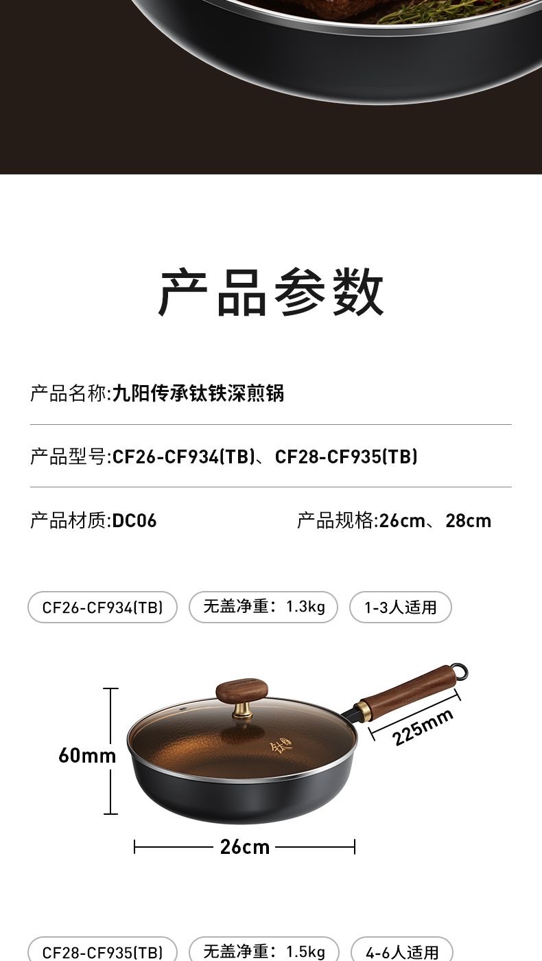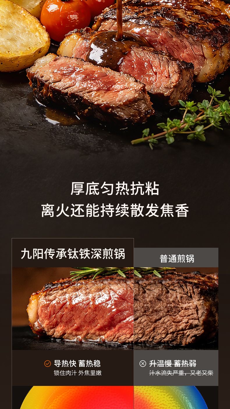 九阳钛铁深煎锅二代真钛0涂层平底聚油双重抗粘氮化防锈磁灶通用