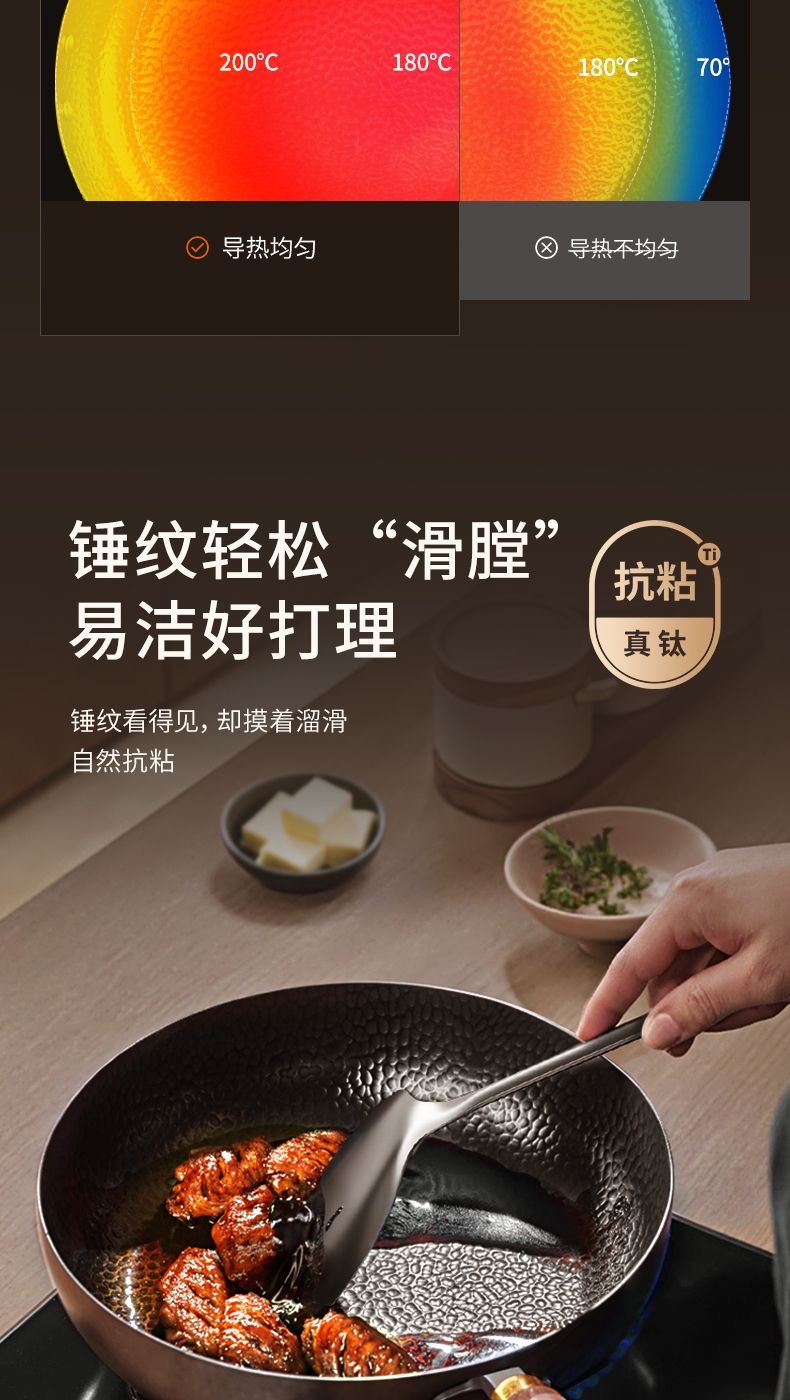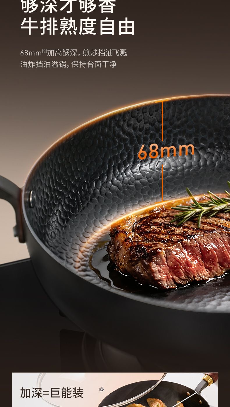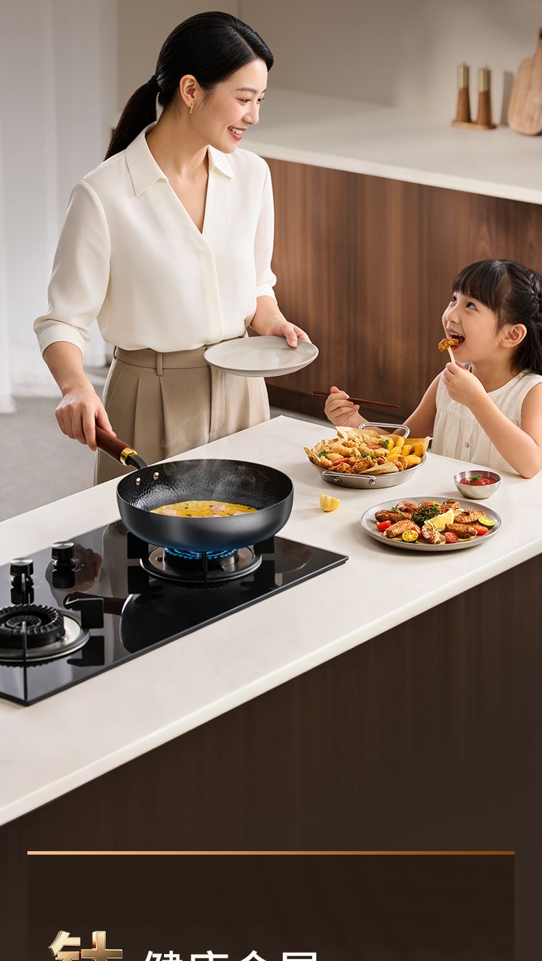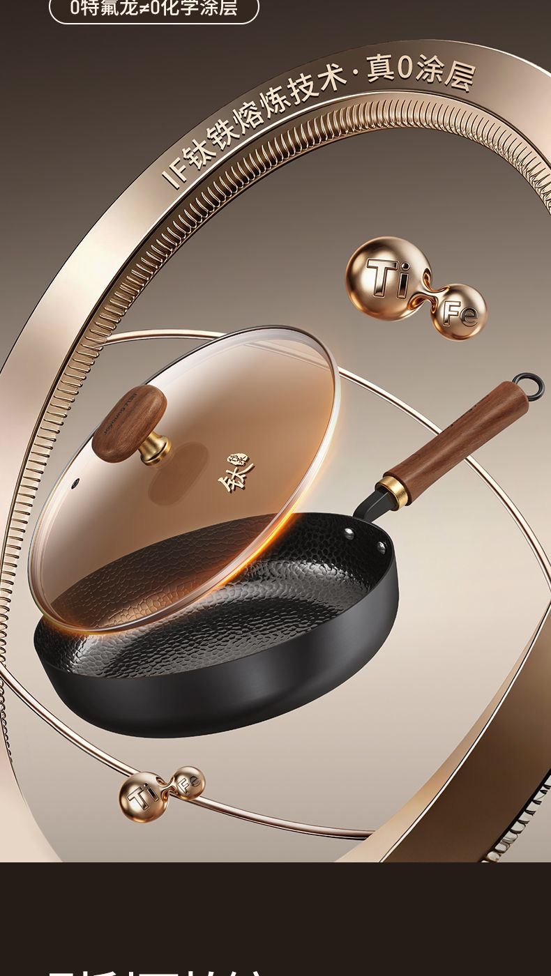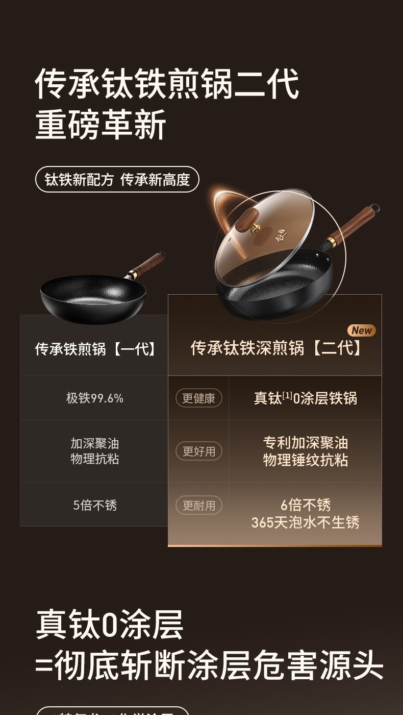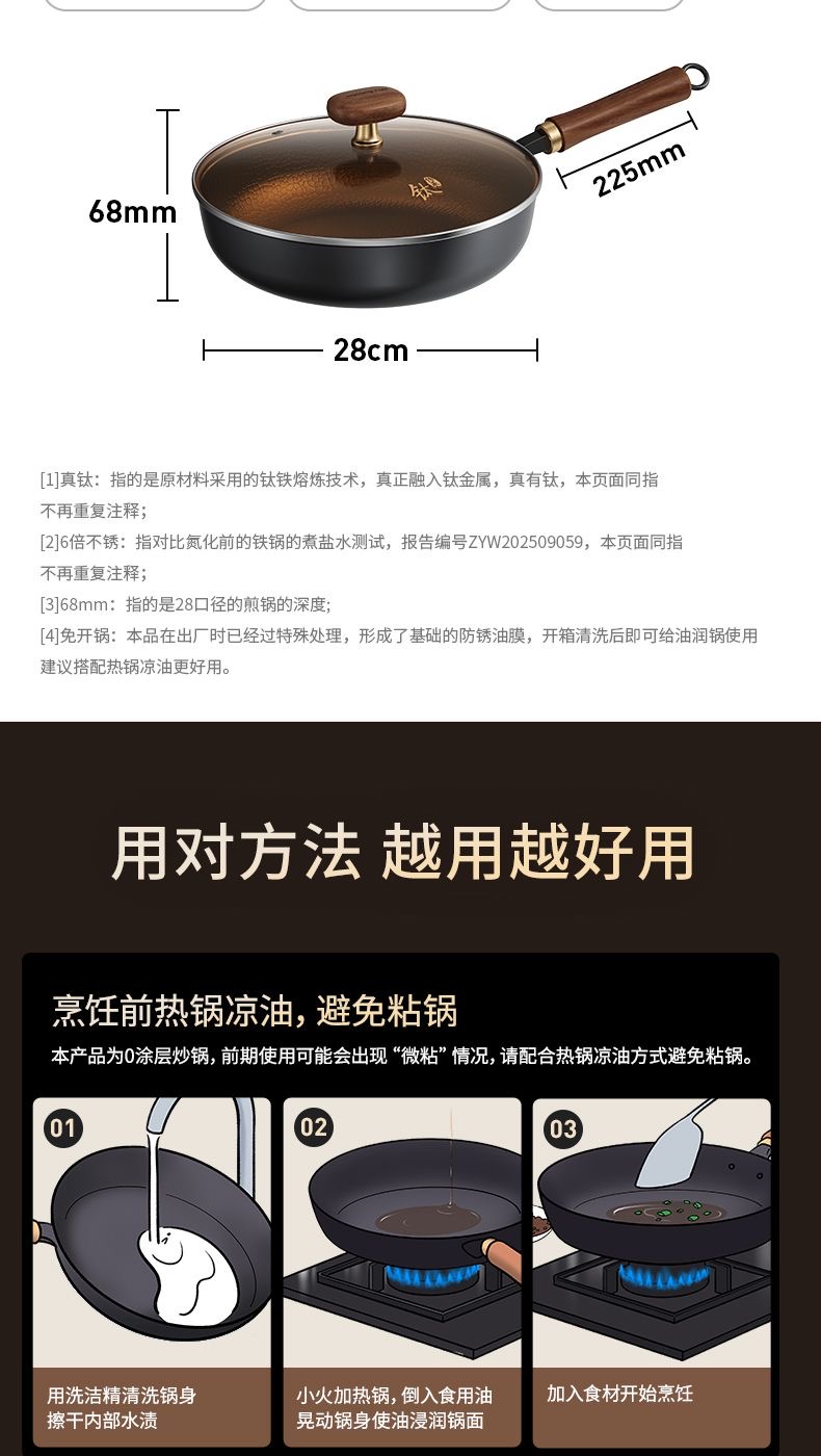 九阳钛铁深煎锅二代真钛0涂层平底聚油双重抗粘氮化防锈磁灶通用