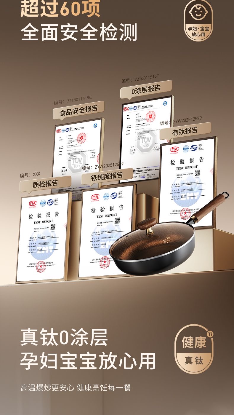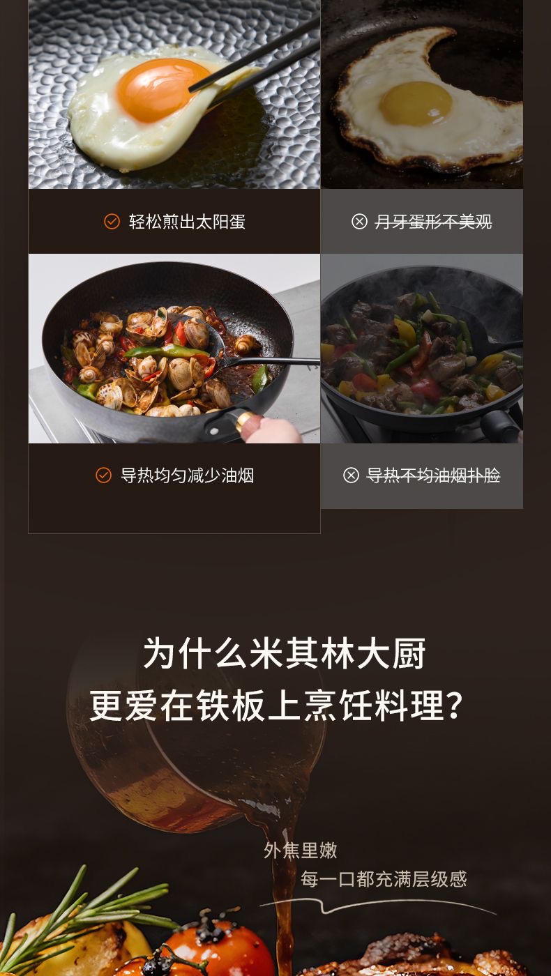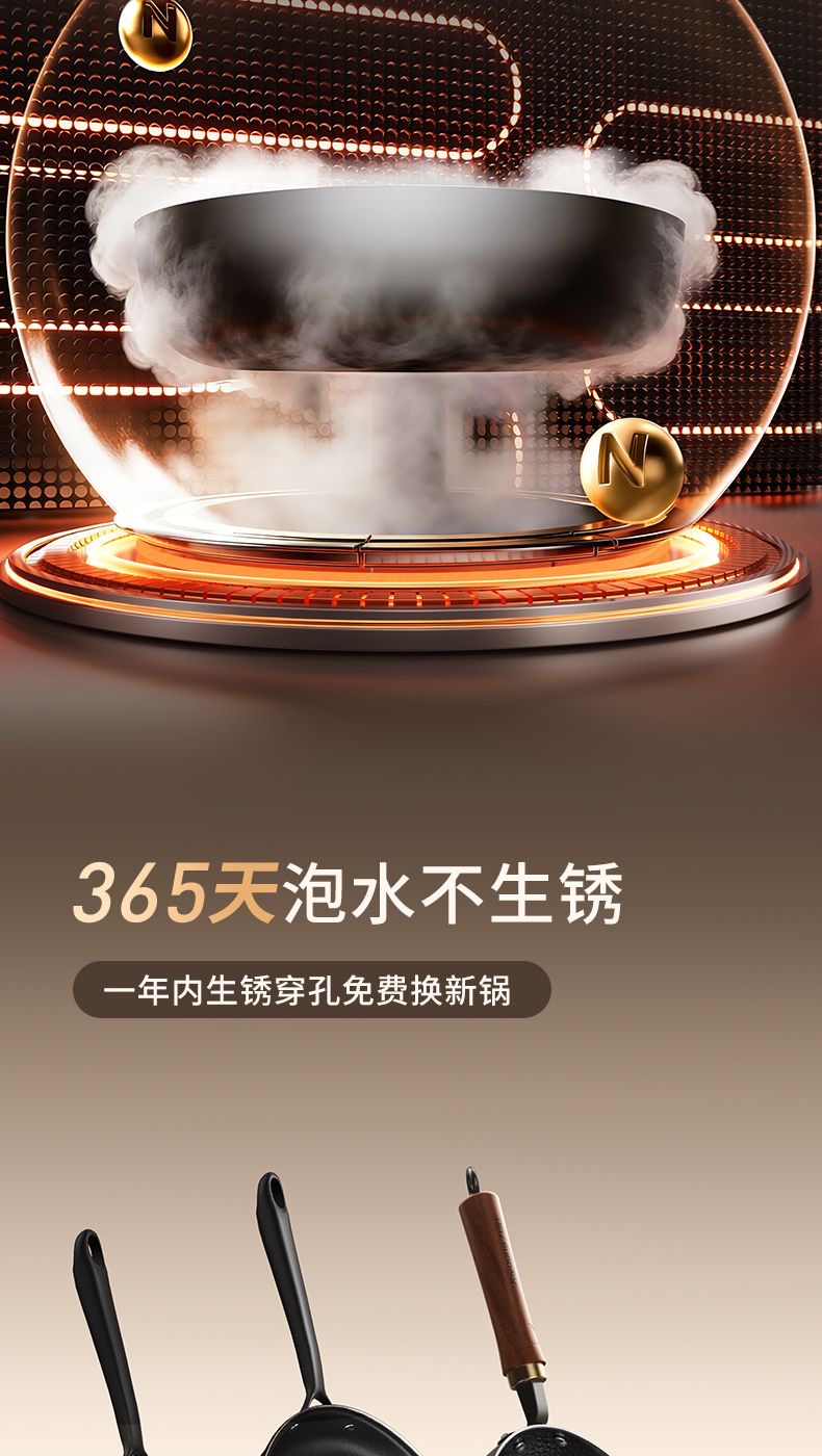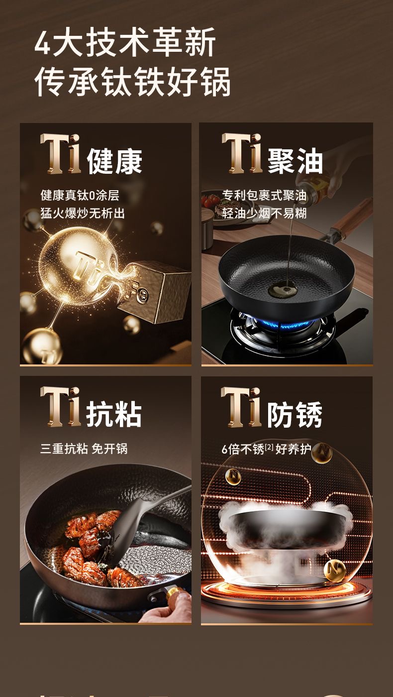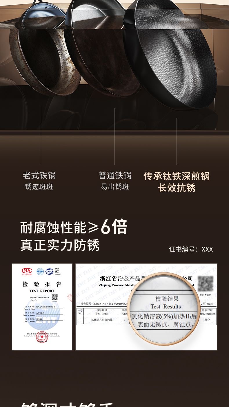 九阳钛铁深煎锅二代真钛0涂层平底聚油双重抗粘氮化防锈磁灶通用
