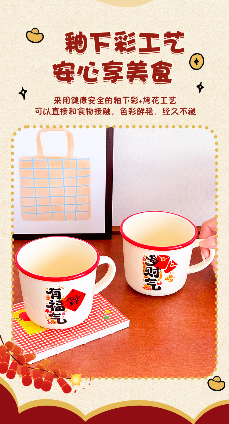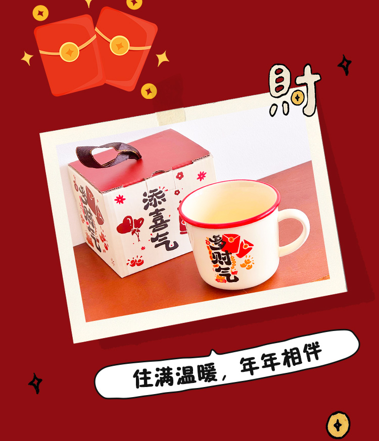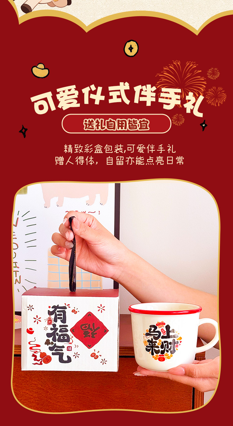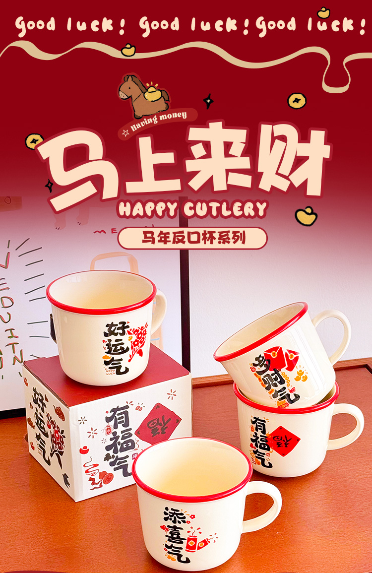 【马上有财反口杯】马年创意陶瓷杯网红新年高颜值杯子马克杯伴手礼水杯