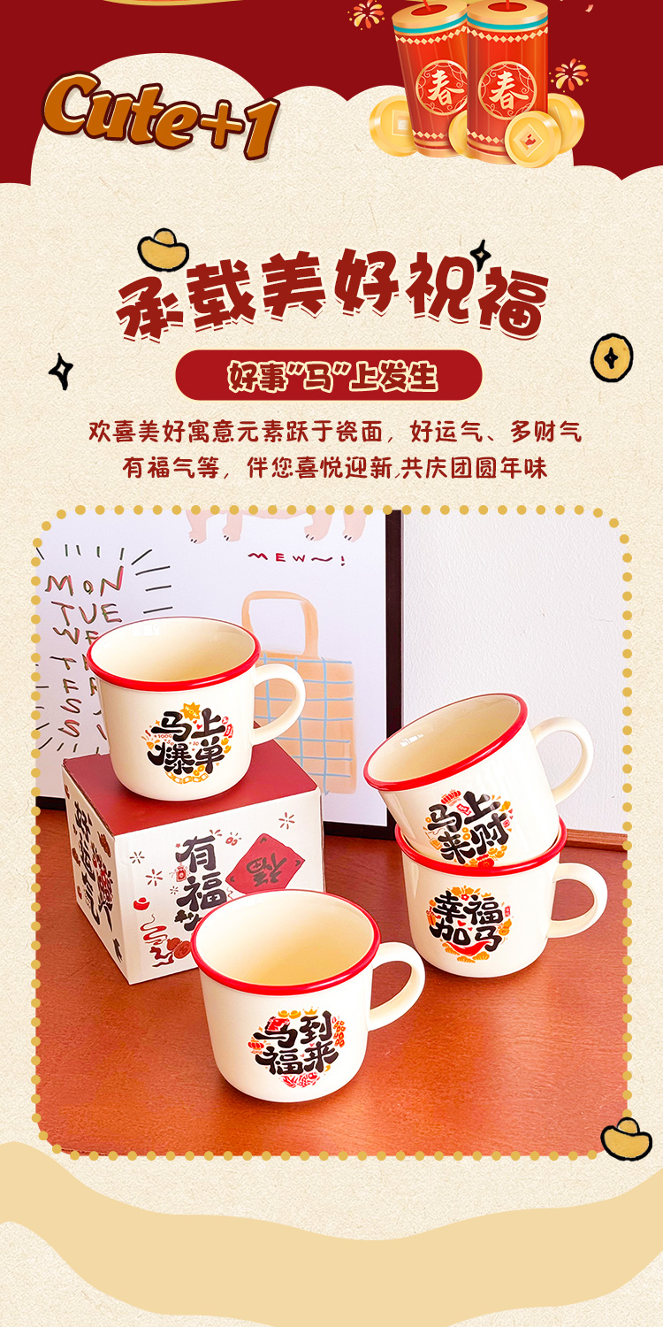 【马年系列收腰杯】马年创意陶瓷杯网红新年高颜值杯子马克杯伴手礼水杯