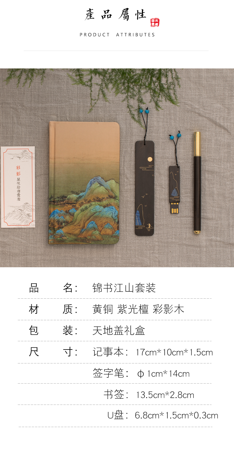 千里江山系列文创伴手礼手账套装礼盒新年礼物书签笔记本本子u盘礼盒中国风