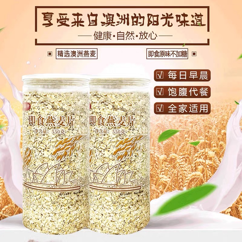 可益康即食燕麦片桶装礼盒 优先澳洲燕麦 麦香浓郁不粗糙 冲泡方便饱腹好 550g*3罐/盒
