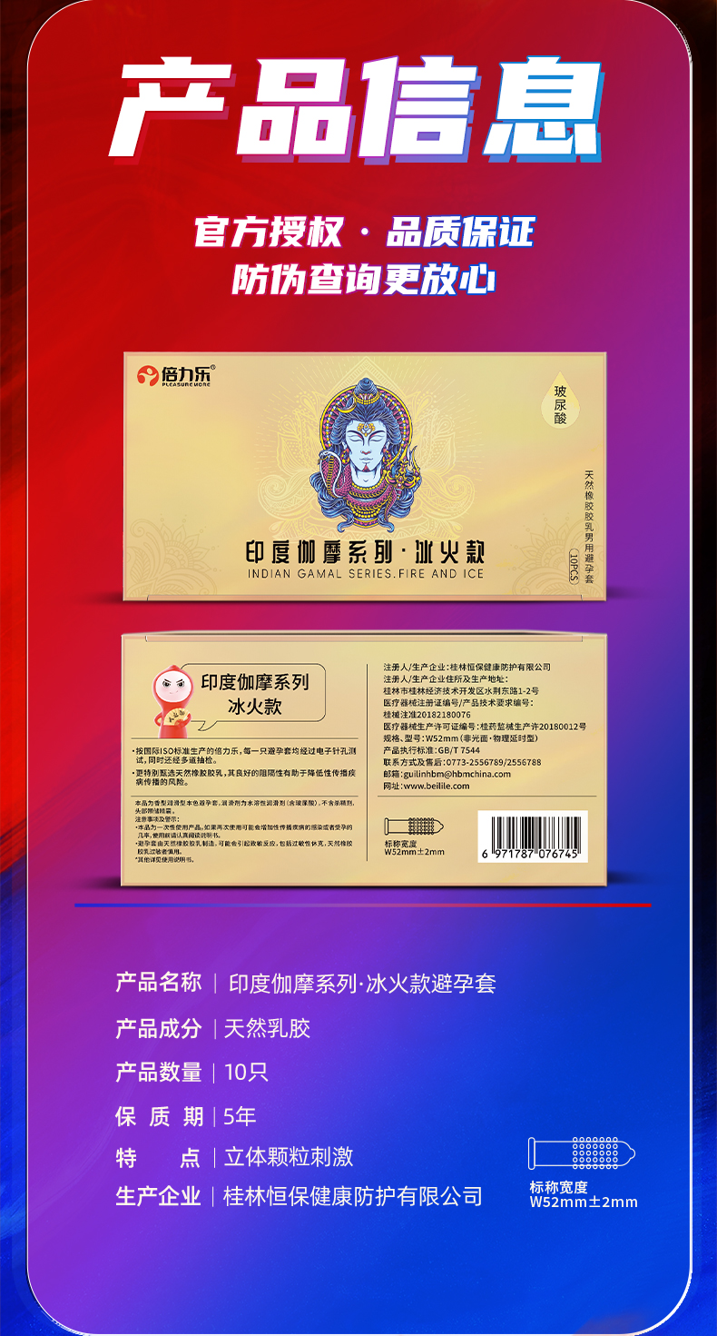 【中红专属】【异国风情】倍力乐印度伽摩冰火颗粒避孕套