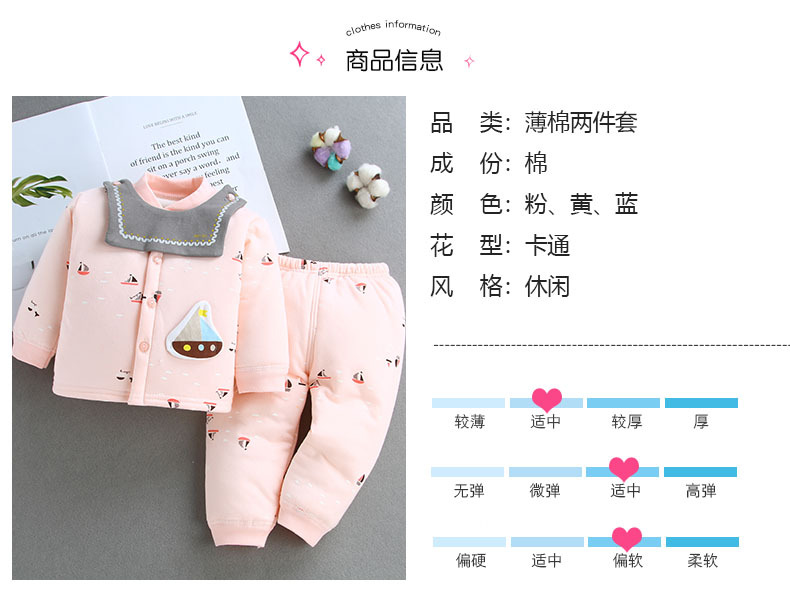 【为宝宝健康而生】A类纯棉婴儿保暖夹棉秋冬加厚套装纯棉新生儿衣服女童男童套装