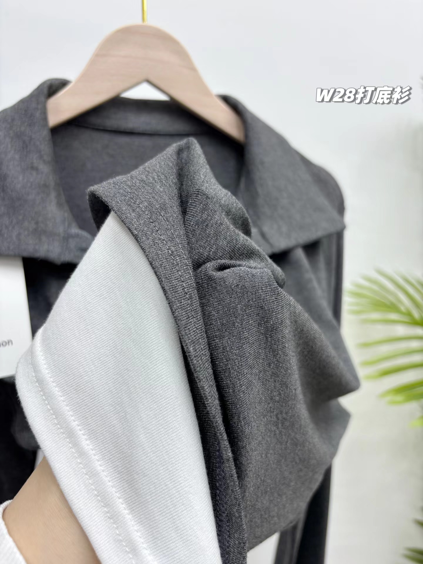 一包2件装,春季新款纽扣假两件可外穿打底衣,高弹力长袖T恤,一秒上身立显小蛮腰!春天来了,早晚温差大,一件合适又好看的打底衣必不可少!时尚又美丽,显年轻又有活力,80支进口人棉纱+300g高密度螺纹面料,弹力大,柔软又细腻,穿上真的巨舒服!手感垂顺,面料柔软关键是,谁穿谁好看,还不挑肤色!!立体瑜伽版型的设计,修身腰线,圆形下摆,完美遮肉不臃肿,尽显好身材。回弹力好,不松垮不变性,上身超ji显精神的!纽扣领设计,纯色简约,高贵风雅;低调内敛的造型,又凸显性感曲线!