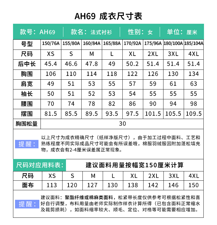 裁缝学苑AH69女士衬衫纸样衬衣女装上衣收腰服装打板裁剪图纸