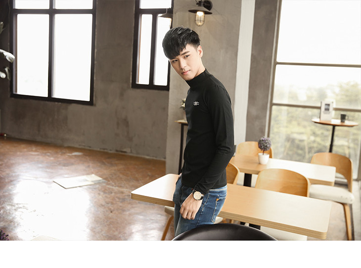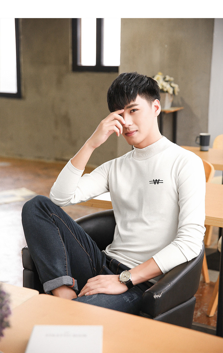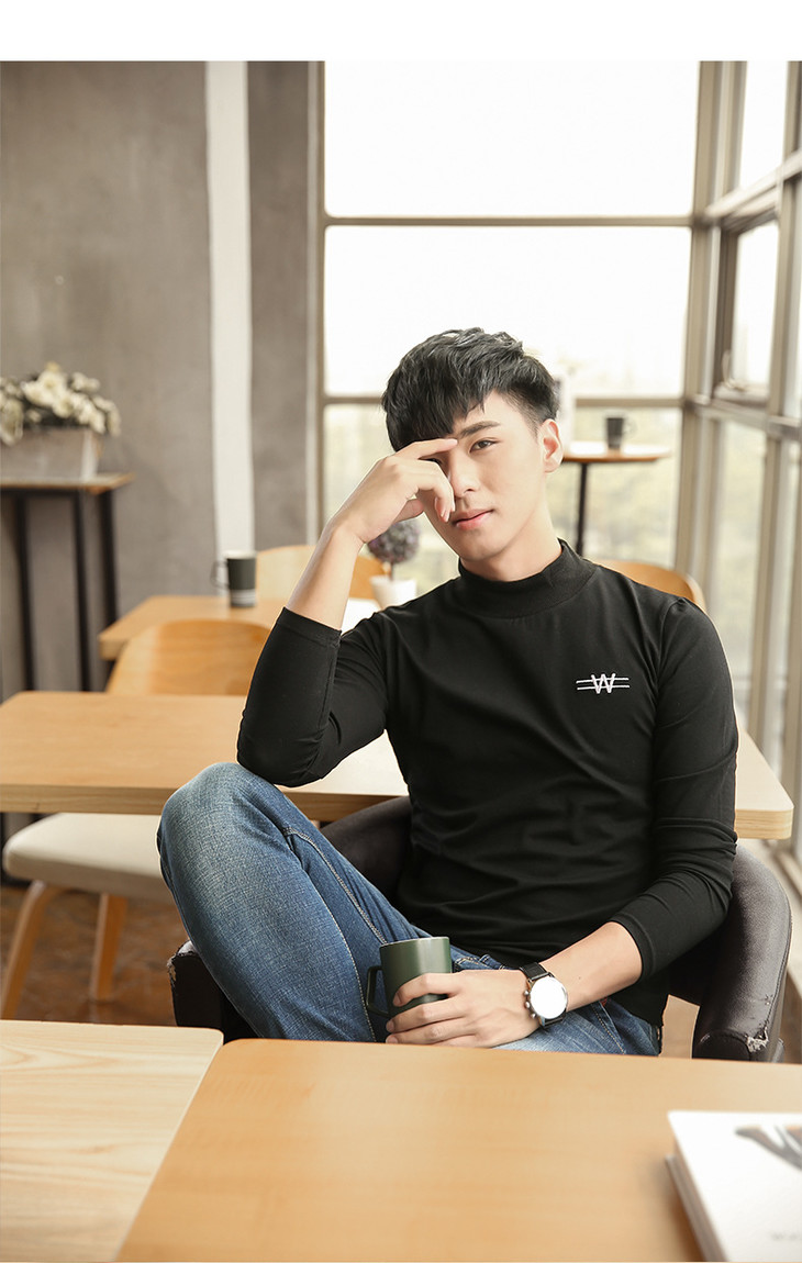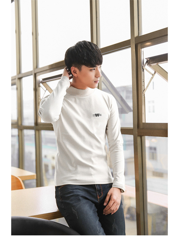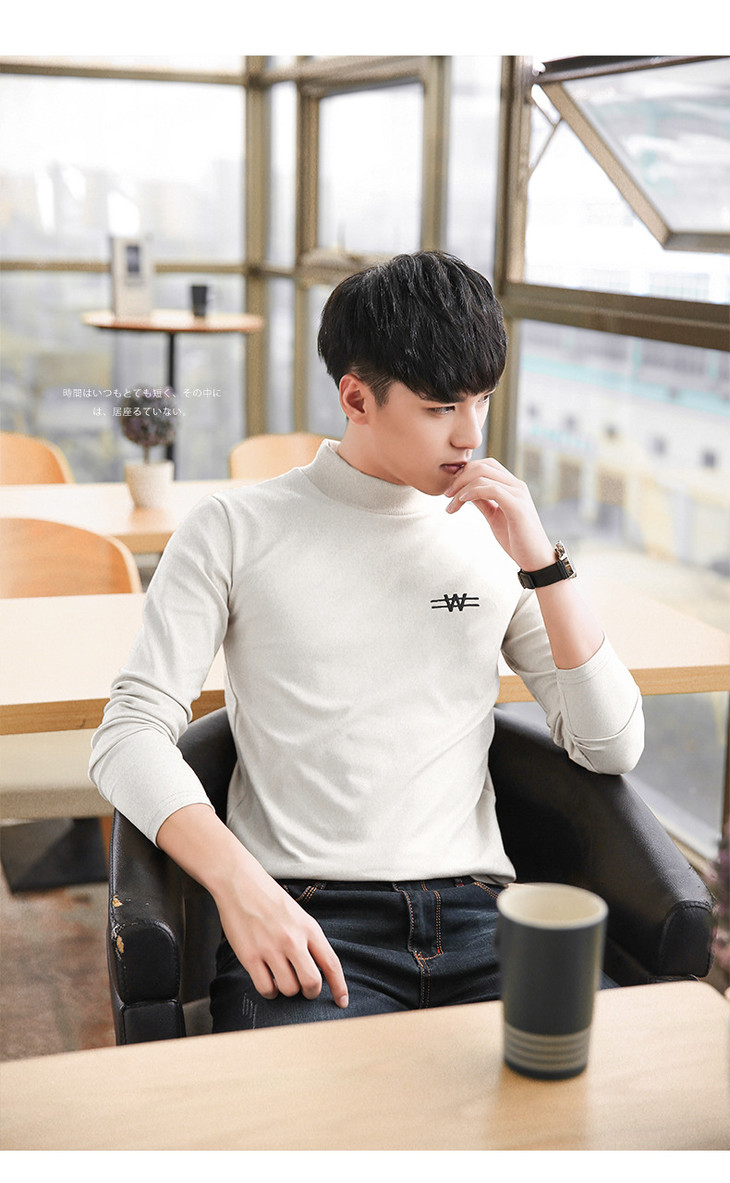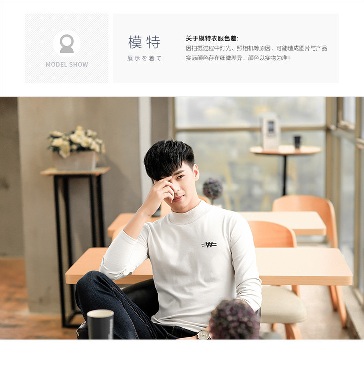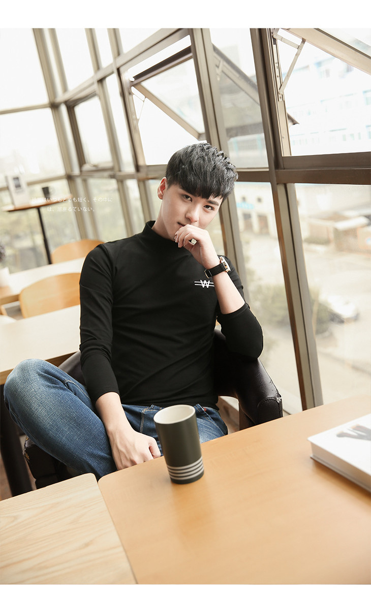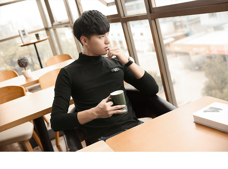 【T恤男】春秋季港风T恤男士圆领帅气纯色修身潮流休闲学生长袖体恤男装