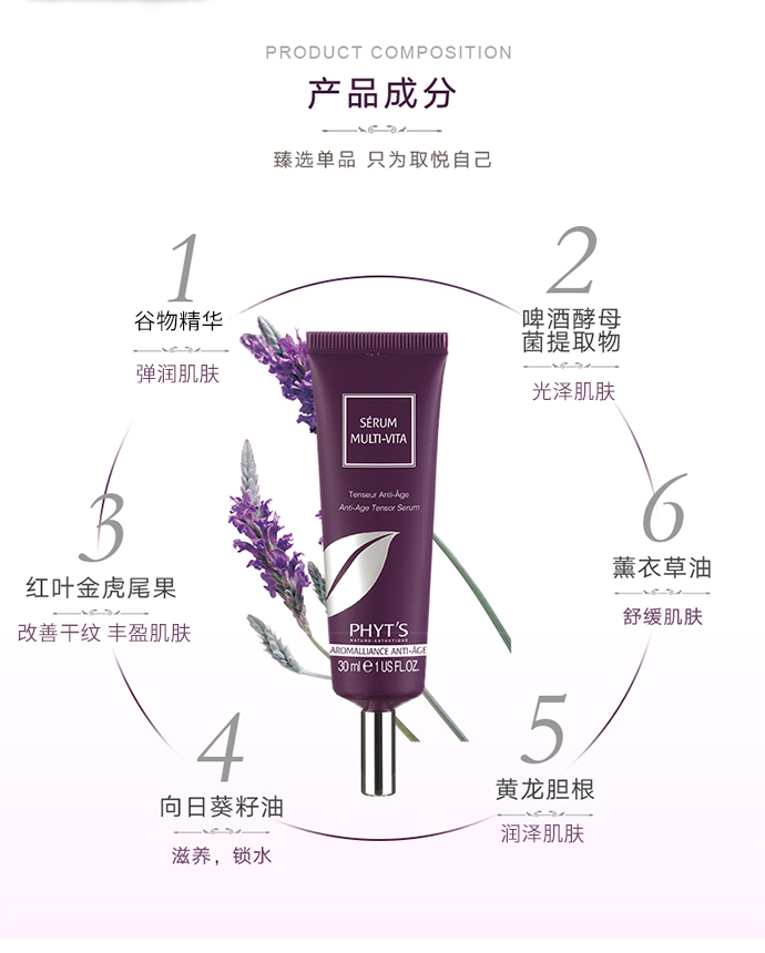 3、蕴含β-胡萝卜素、金虎尾/维他命C、酵母、锌、柠檬等,加速细胞重生及帮助胶原蛋白合成,抗衰老护理营养滋润,使皮肤明显年轻。